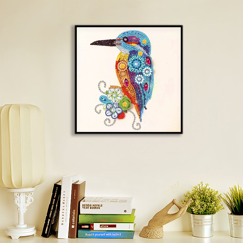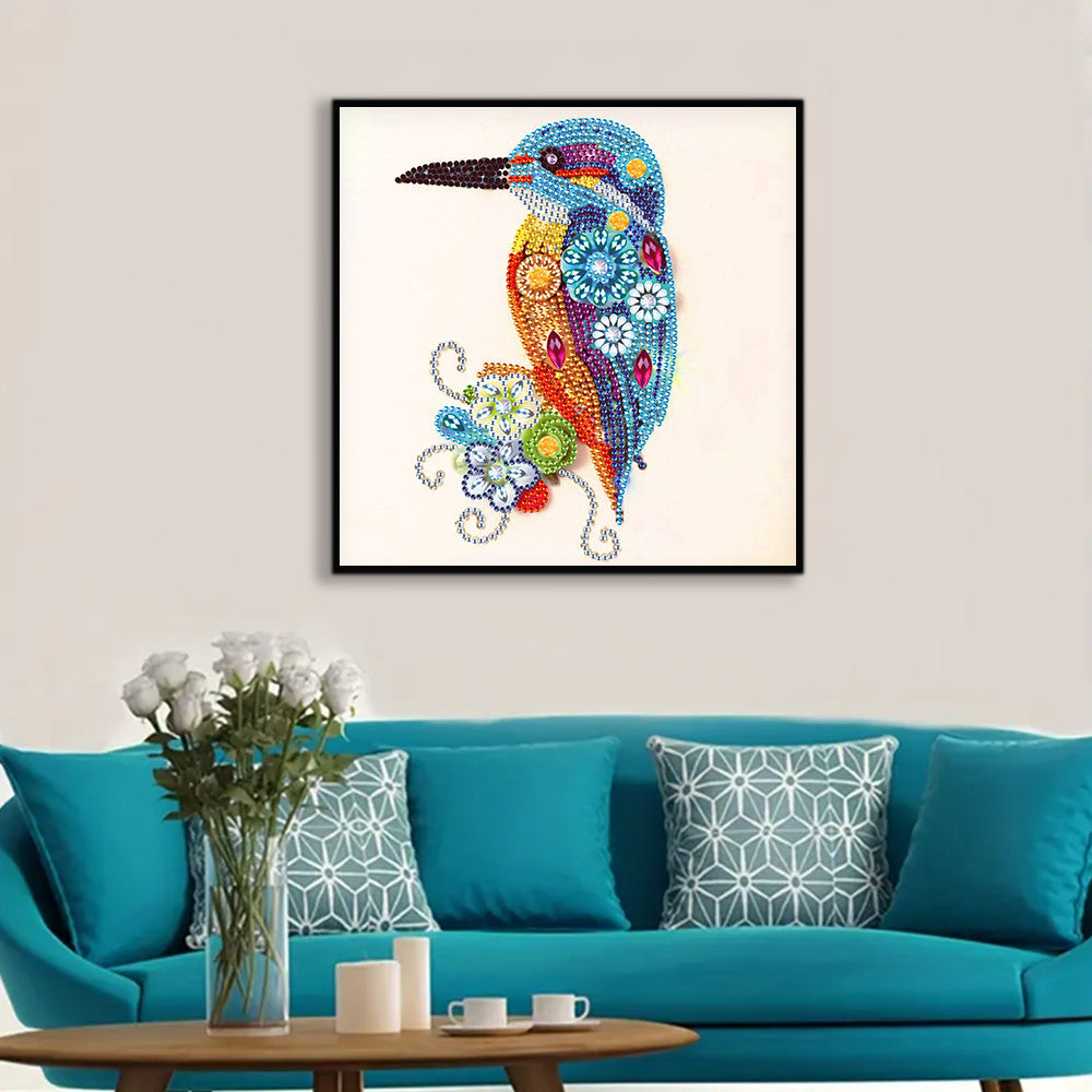 Blauer Kolibri und Gänseblümchen Sonderform Diamond Painting