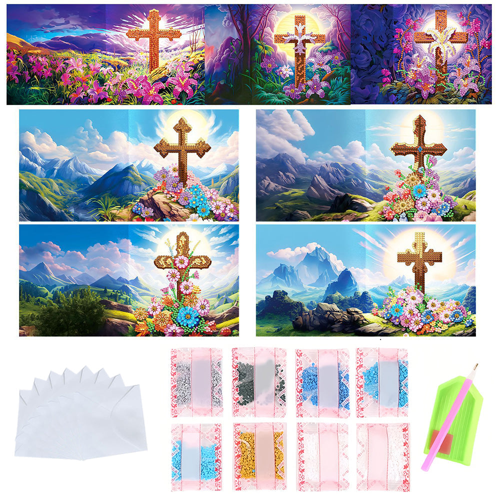 Blumen Kreuz Grußkarten | 8 Stück