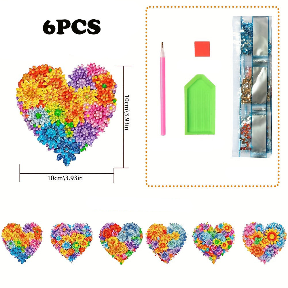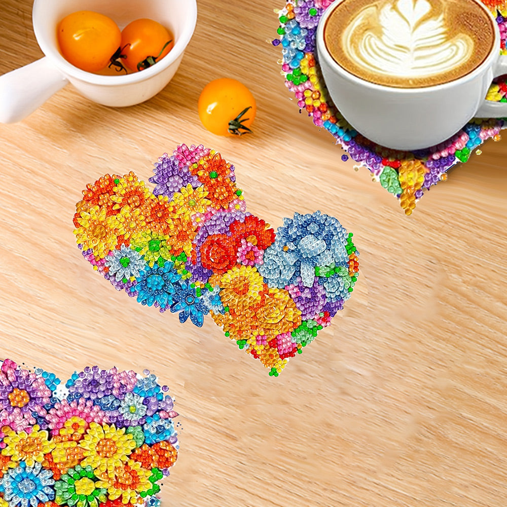6Stück Bunte Blumen in Herzform Diamond Painting Untersetzer