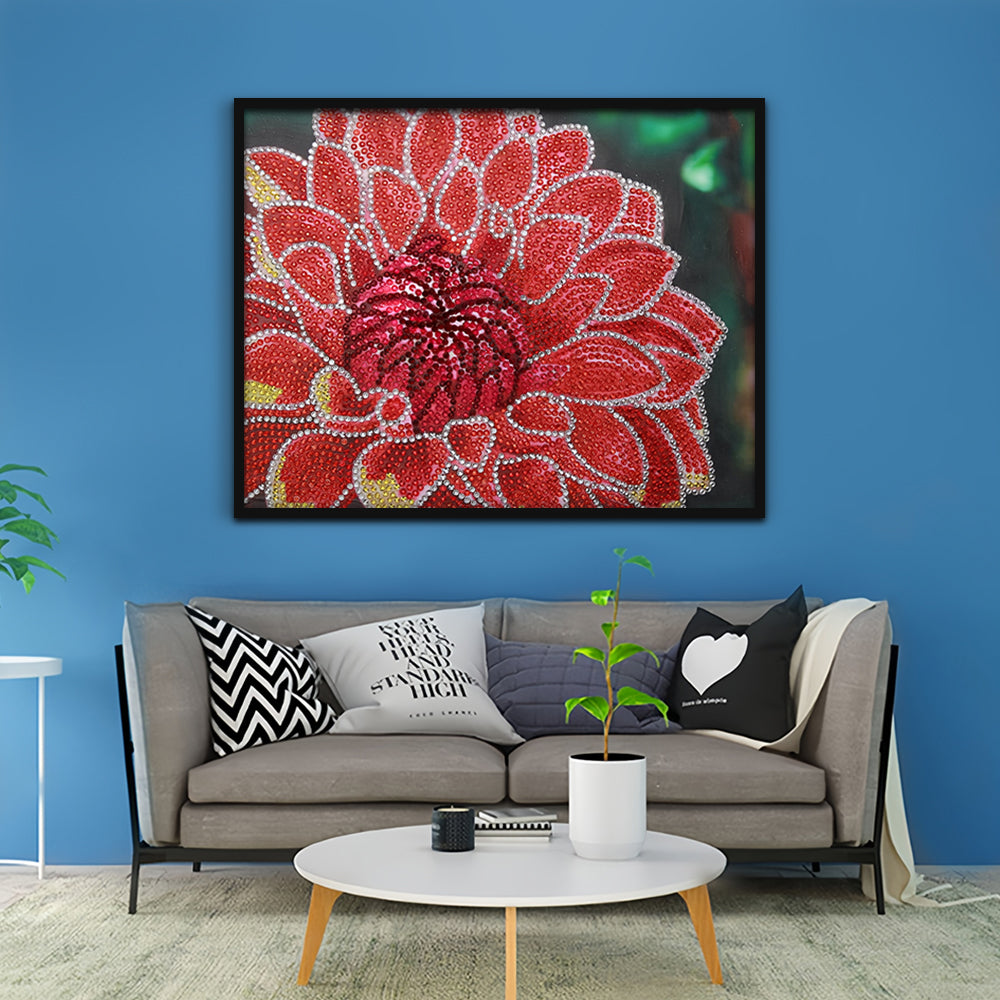 Rote Chrysantheme Sonderform Diamond Painting