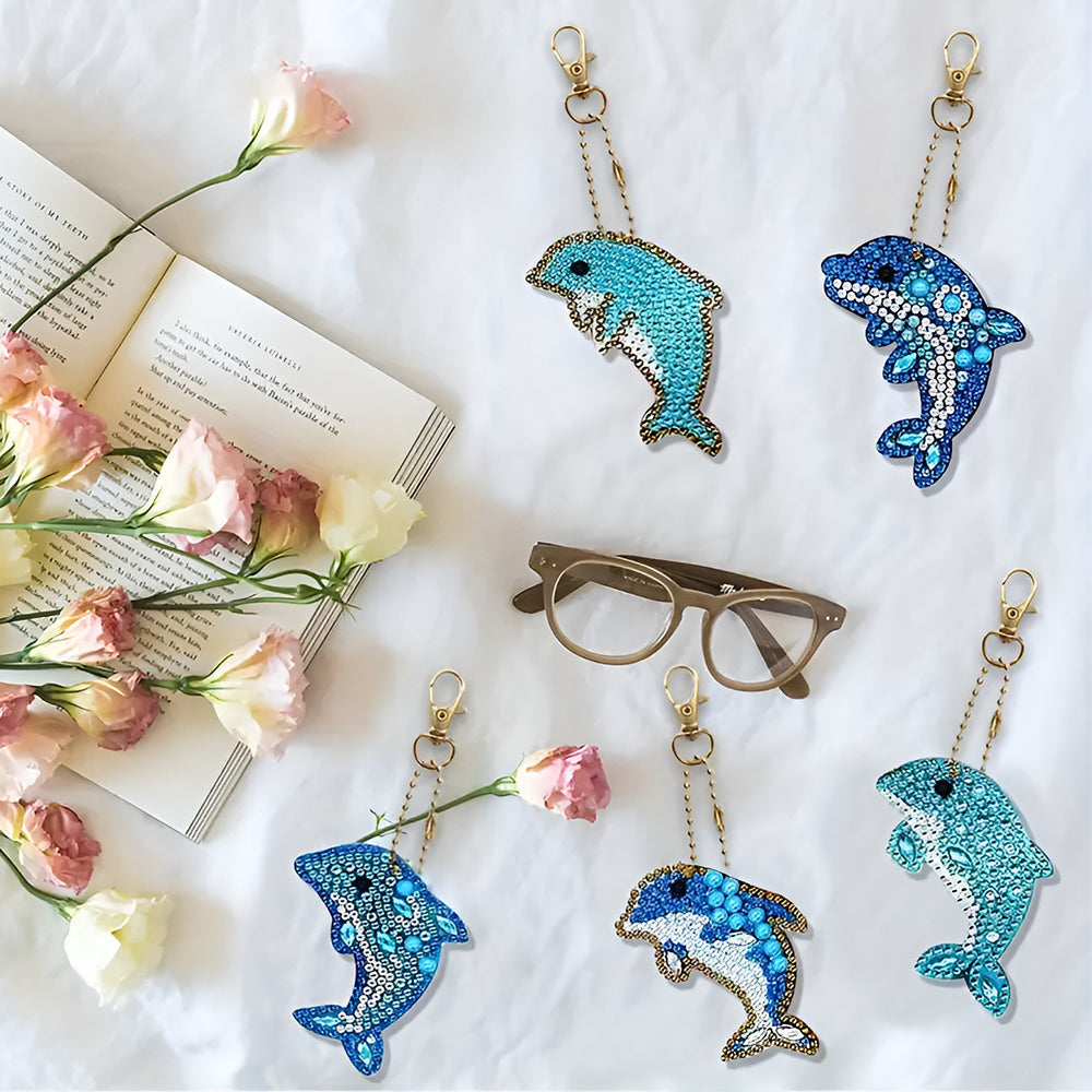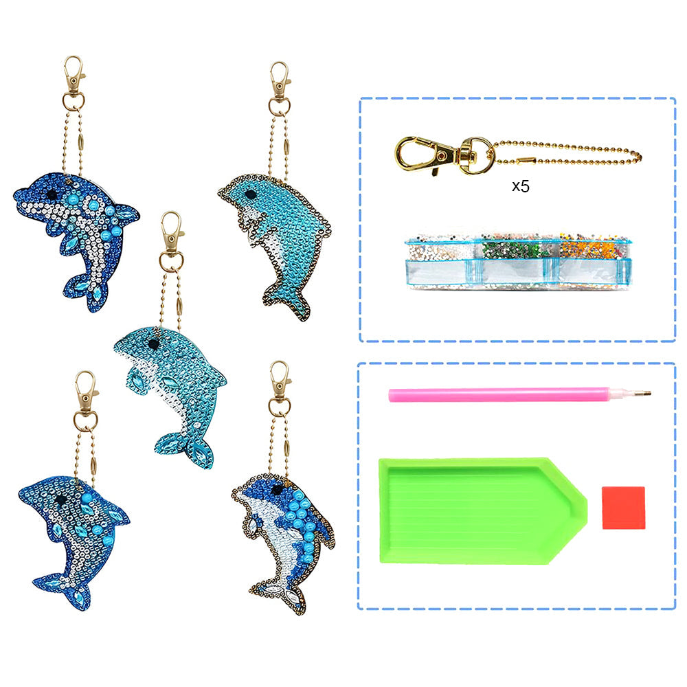 5Pcs Blaue Delfine Acryl Doppelseitiger Schlüsselanhänger Diamond Painting