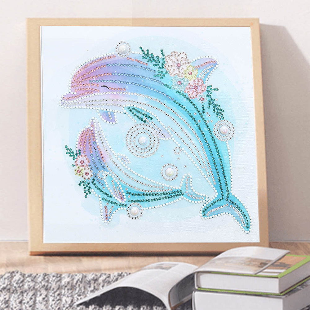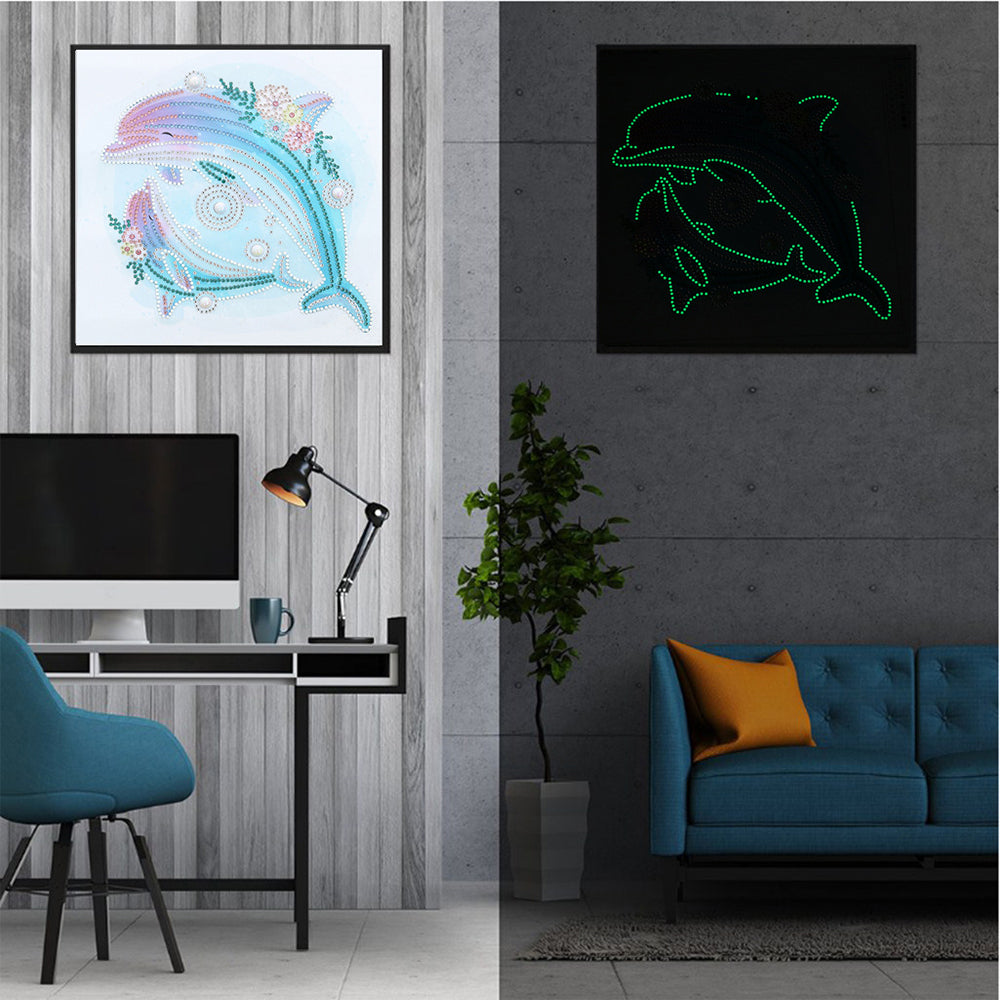 Delphinmutter und Baby Leuchtend Sonderform Diamond Painting