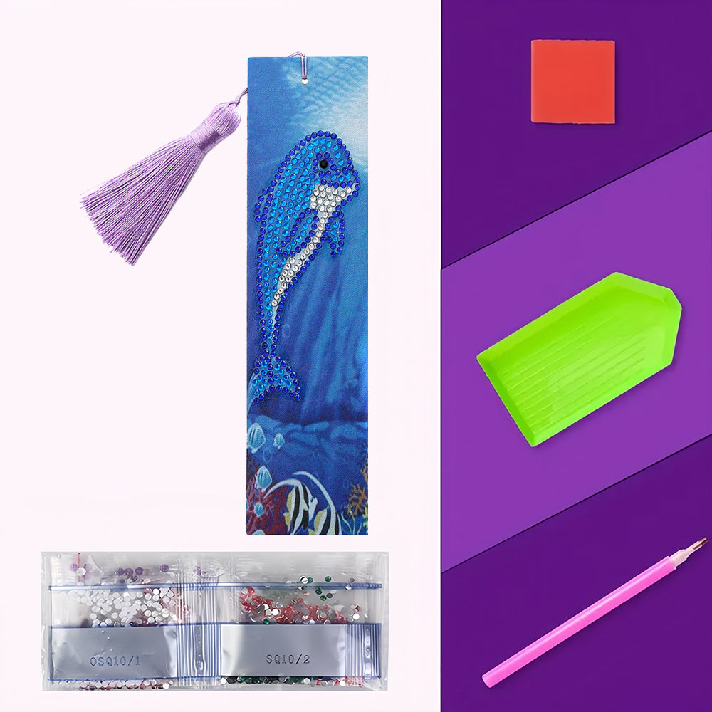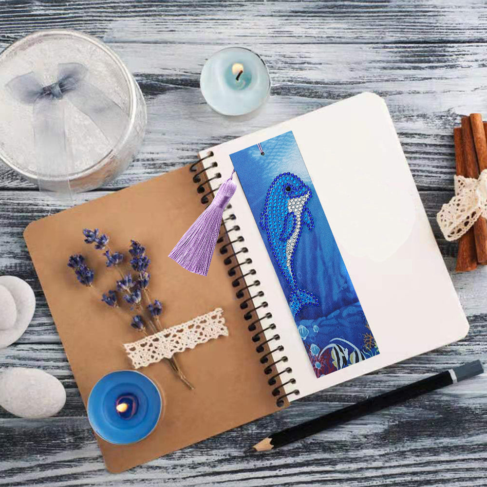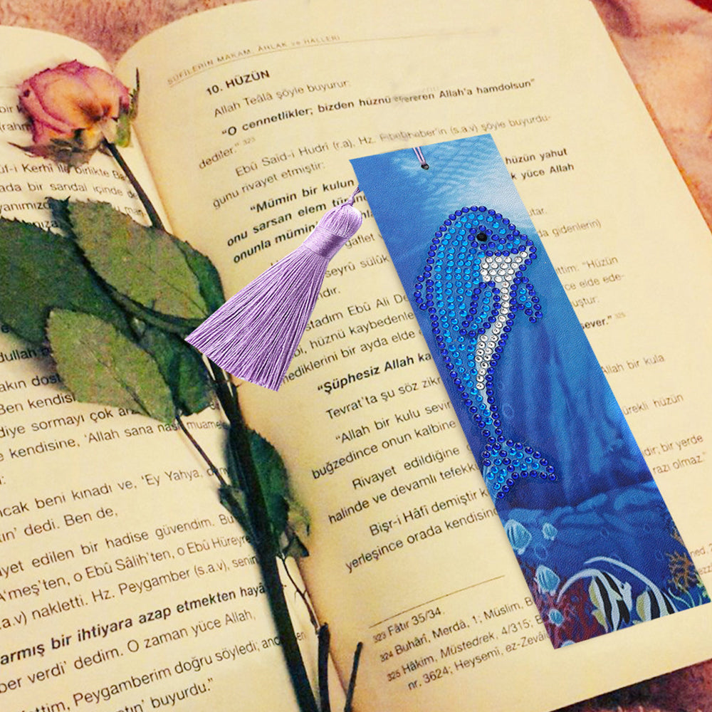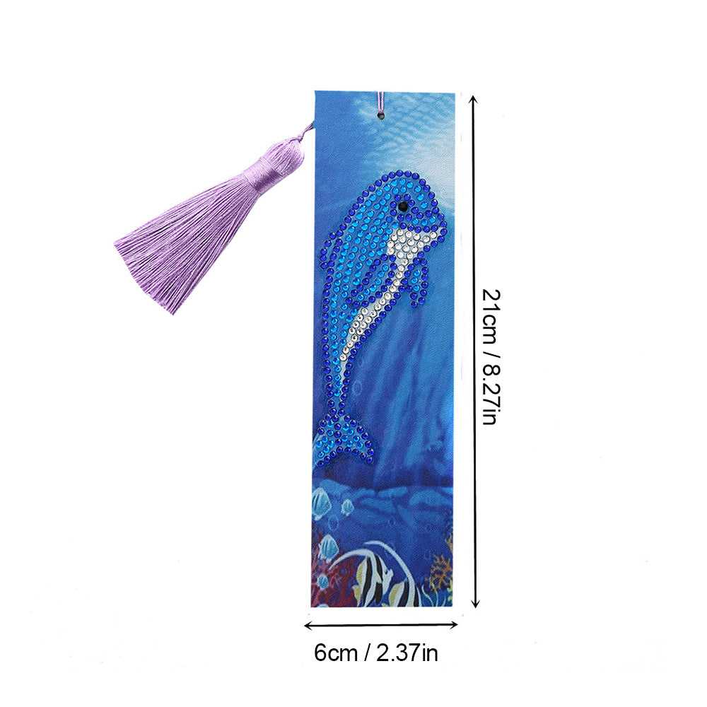 Niedlicher Blauer Delphin Leder Lesezeichen Diamond Painting