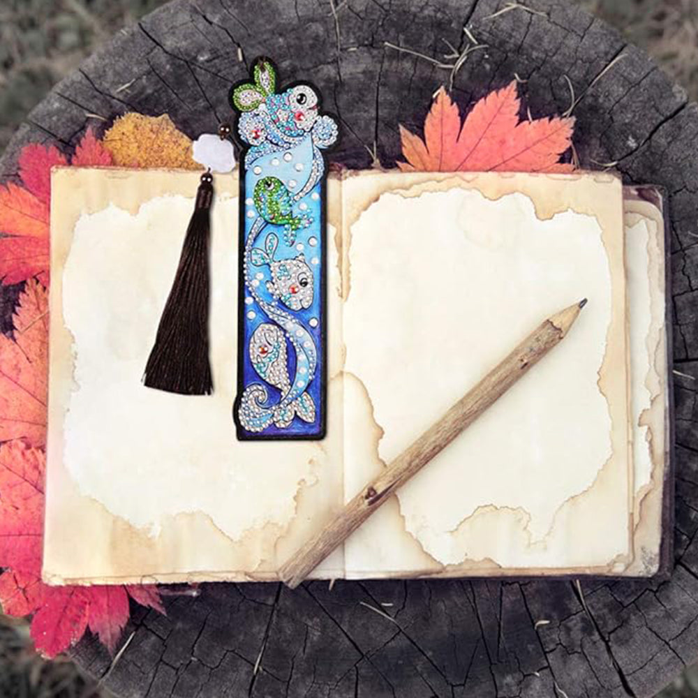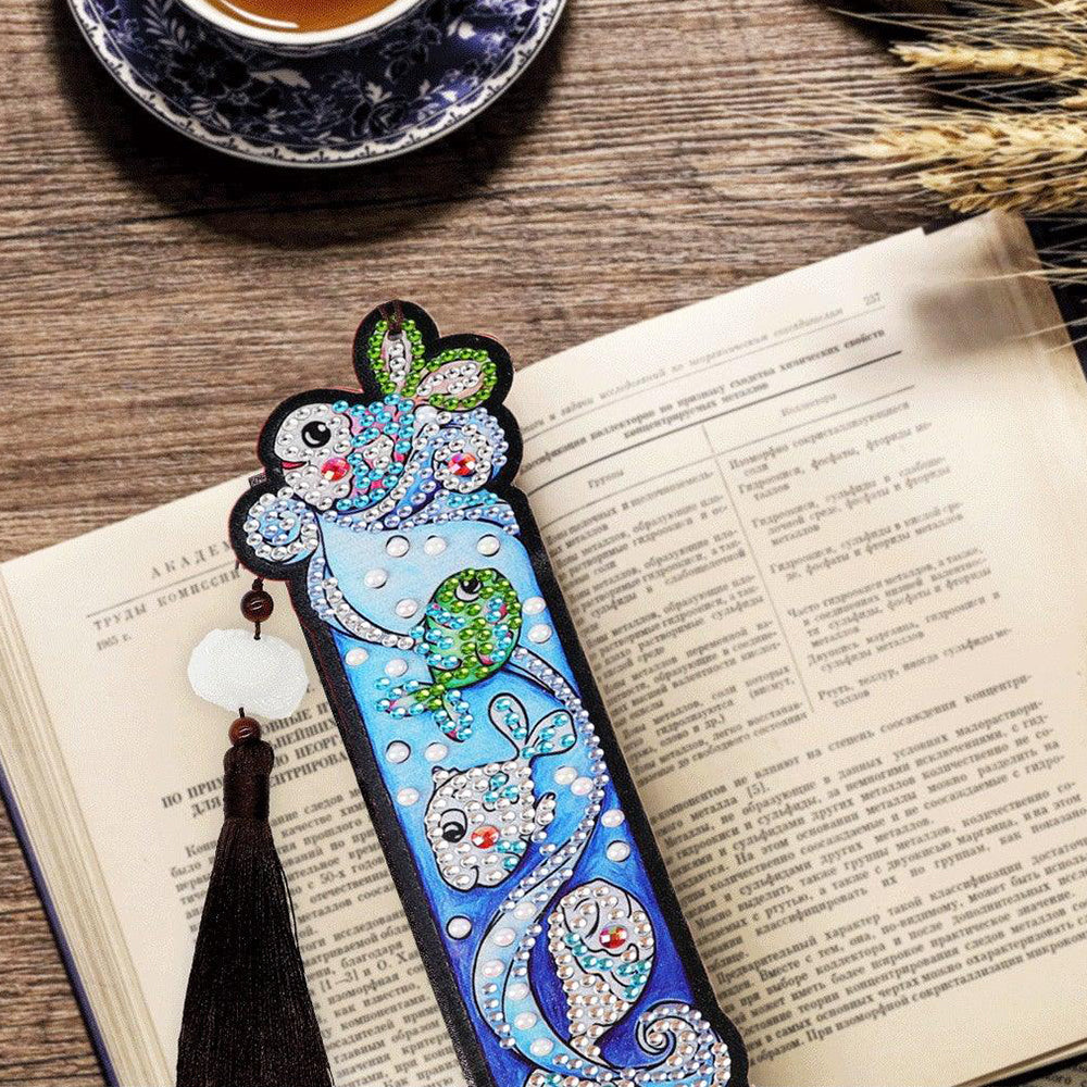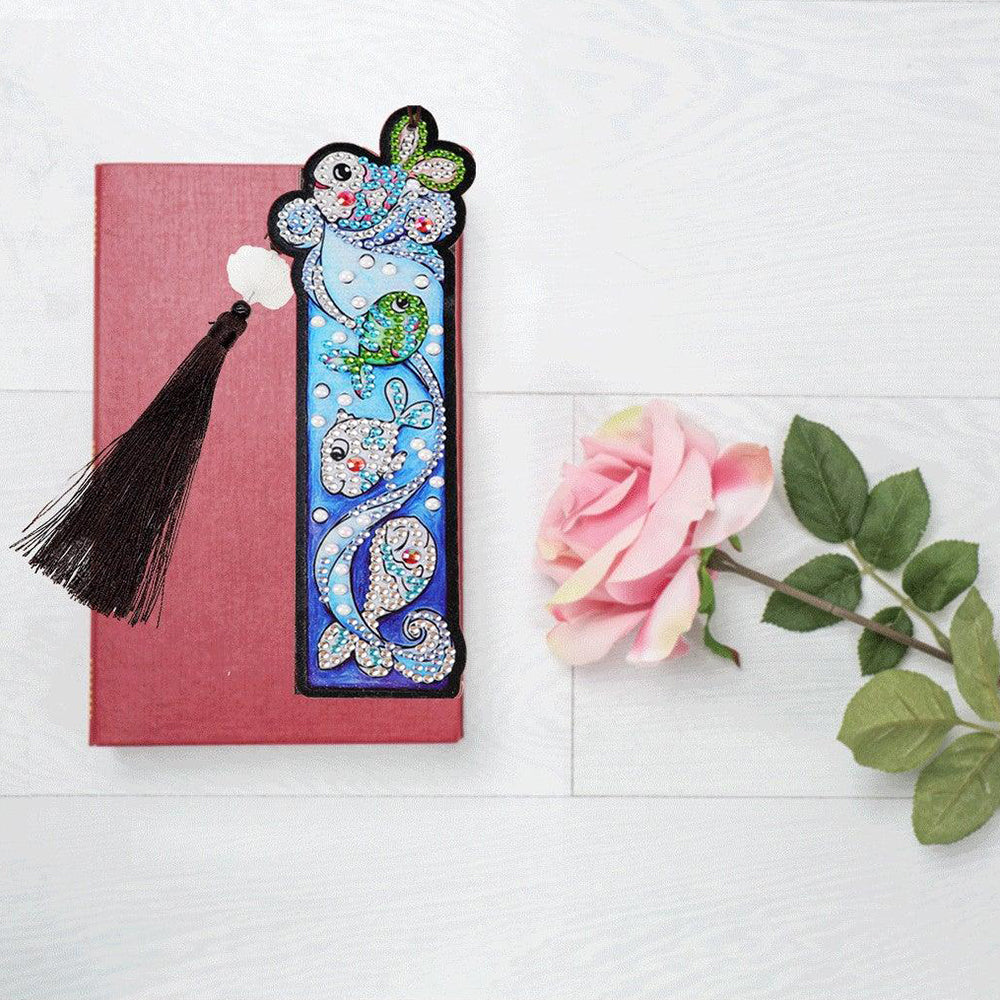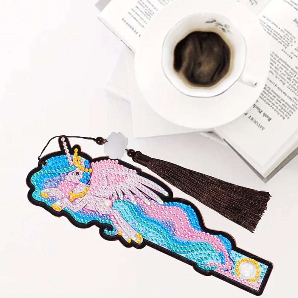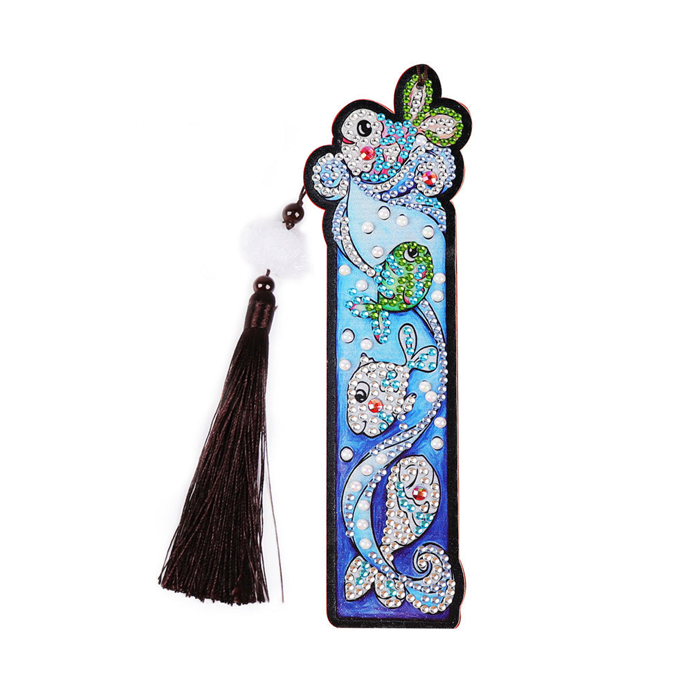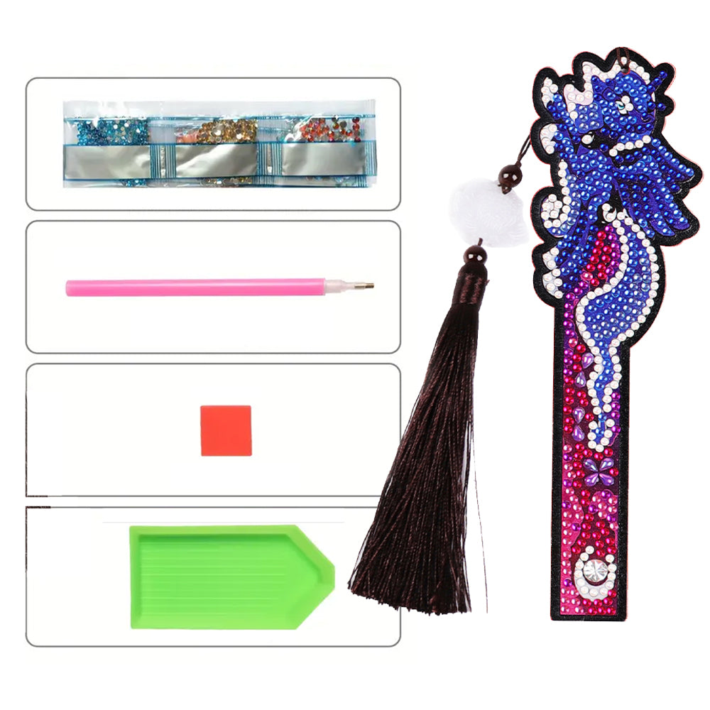 1/5St. Cartoon Einhorn und Fisch Leder Lesezeichen Diamond Painting