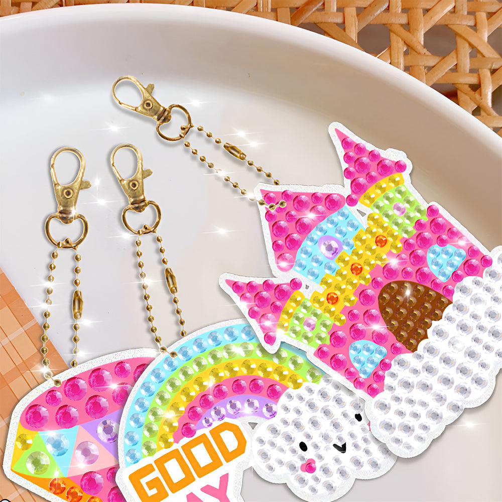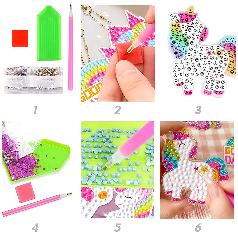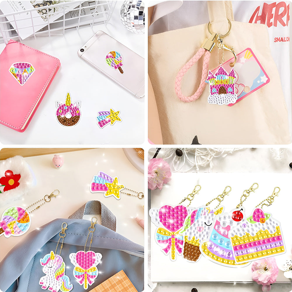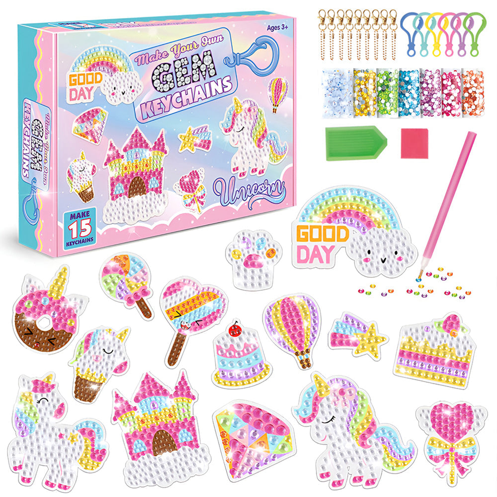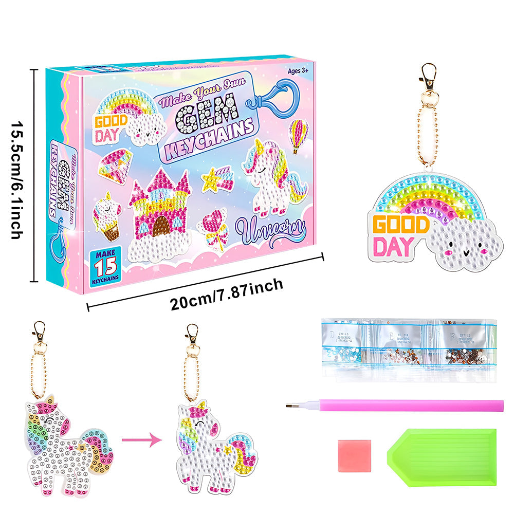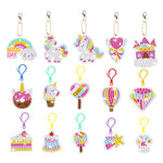 15Stück Regenbogen Edelstein Einhorn Acryl Einseitiger Schlüsselanhänger Diamond Painting