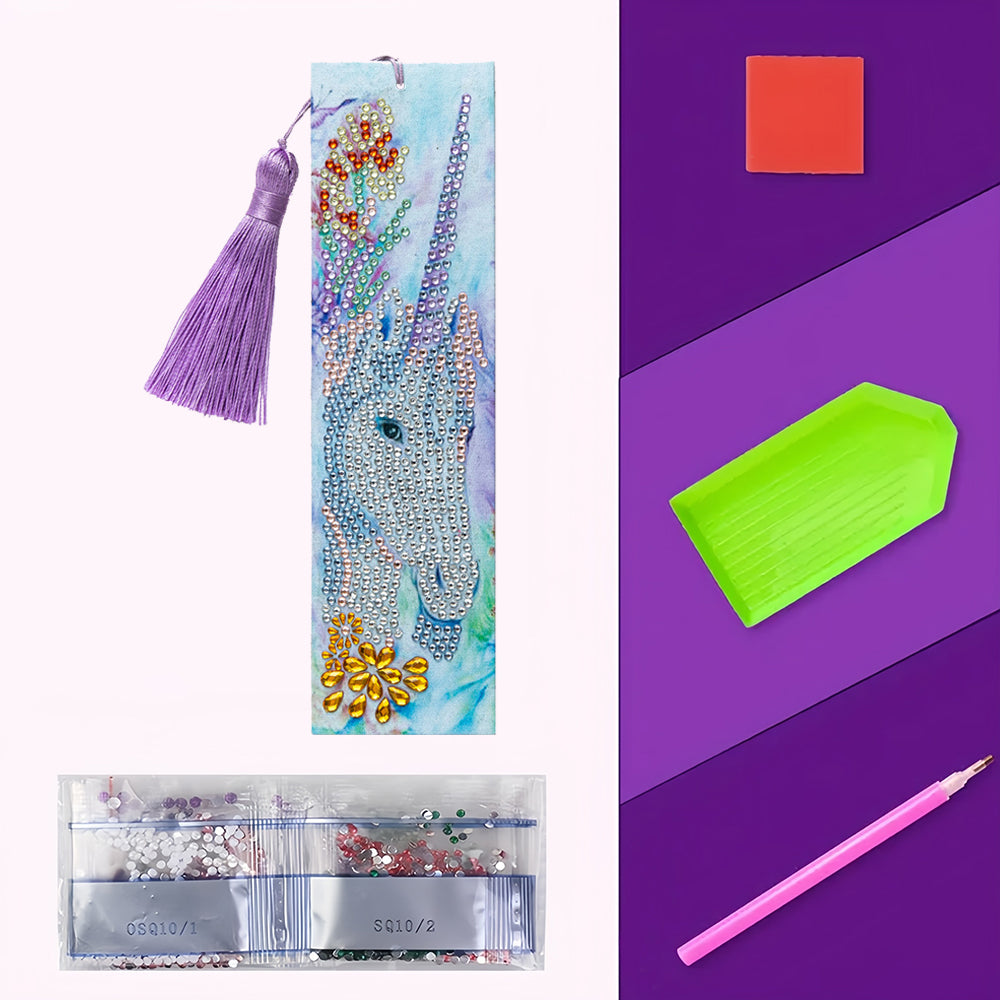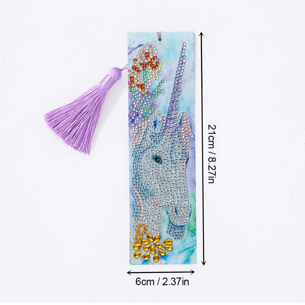 Einhorn und Kleine Blumen Leder Lesezeichen Diamond Painting