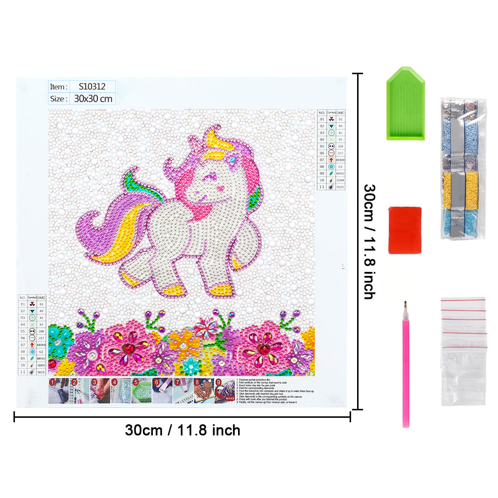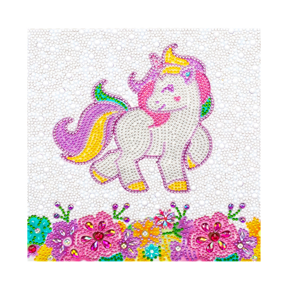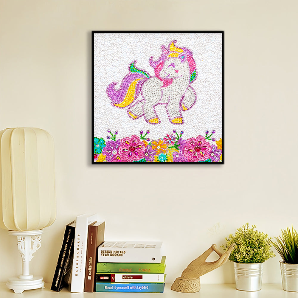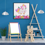 Glückliches Einhorn und Blumen Sonderform Diamond Painting