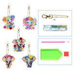 5Pcs Bunte Blumen Elefant Acryl Doppelseitiger Schlüsselanhänger Diamond Painting