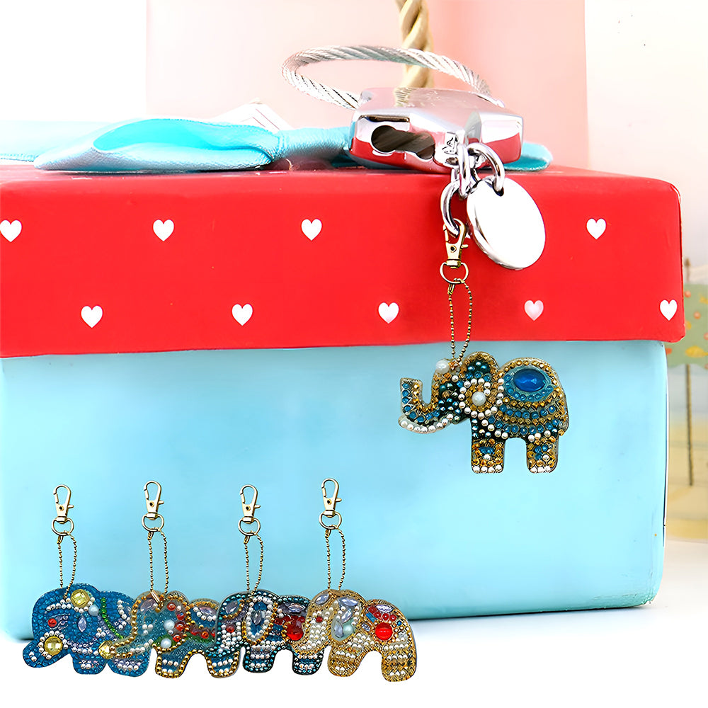 5Pcs Bunter und Prächtiger Elefant Acryl Doppelseitiger Schlüsselanhänger Diamond Painting