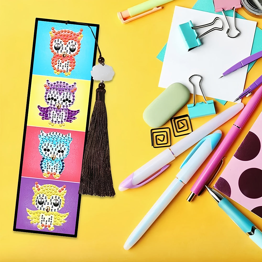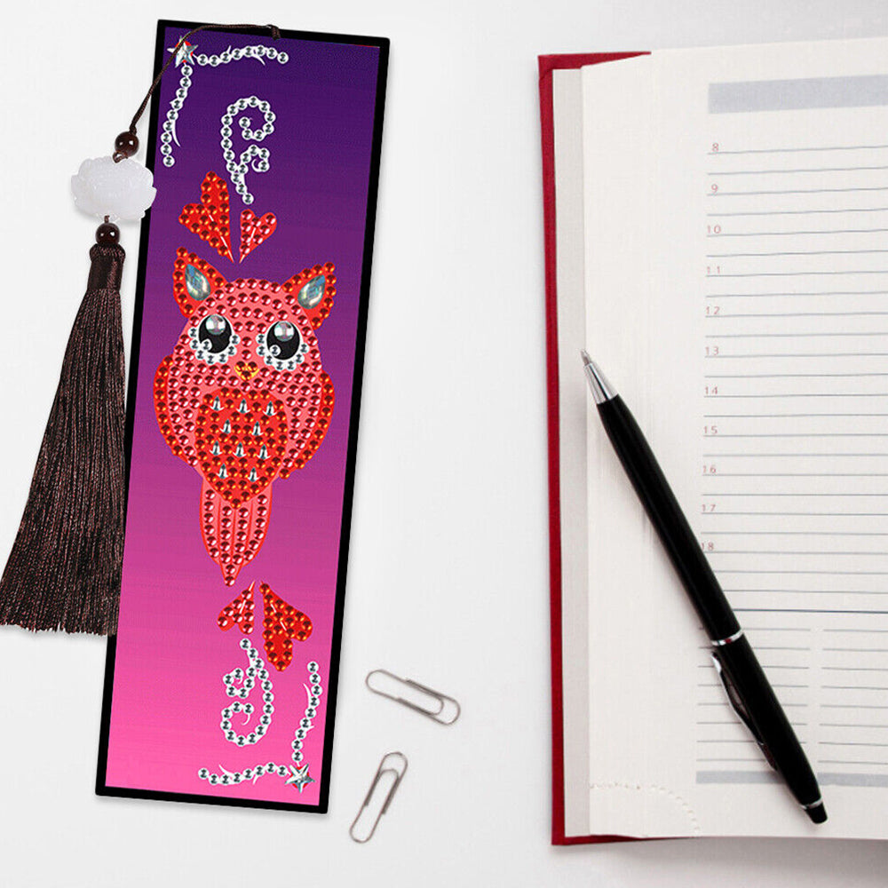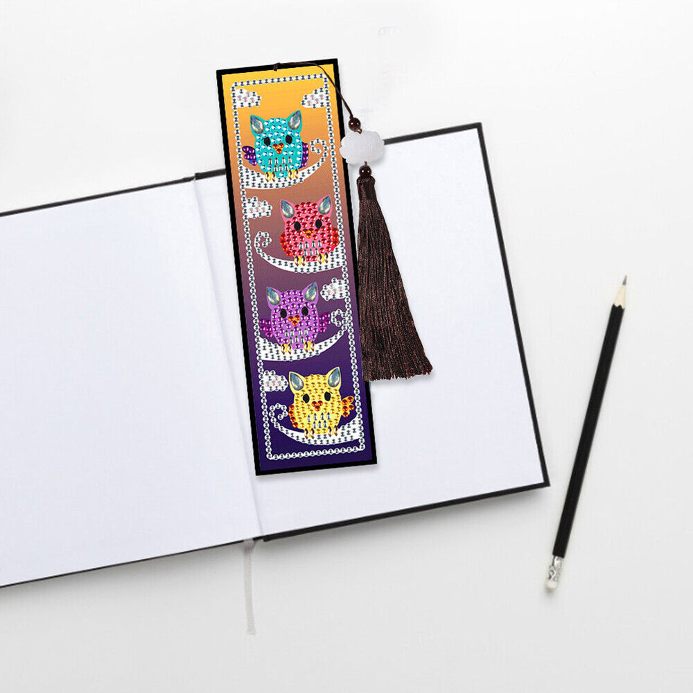 2/4St. Mond und Baby-Eulen Leder Lesezeichen Set Diamond Painting