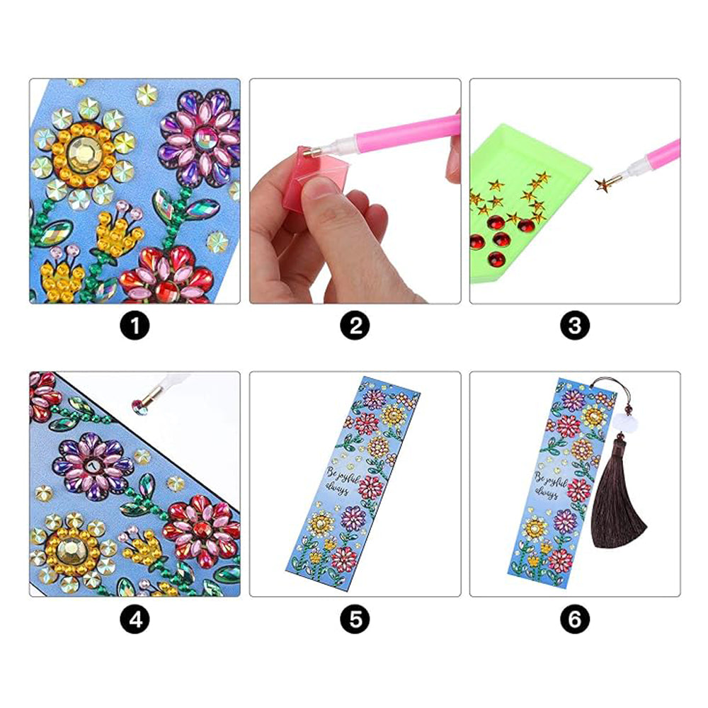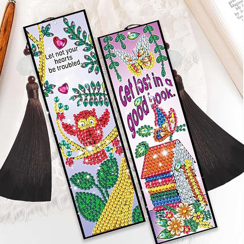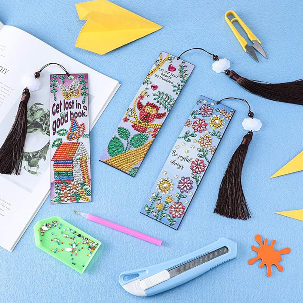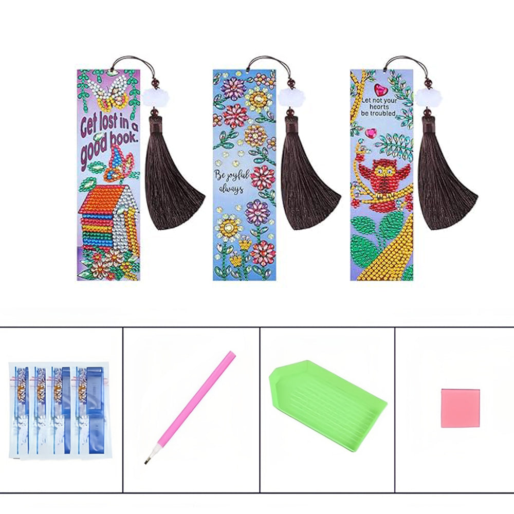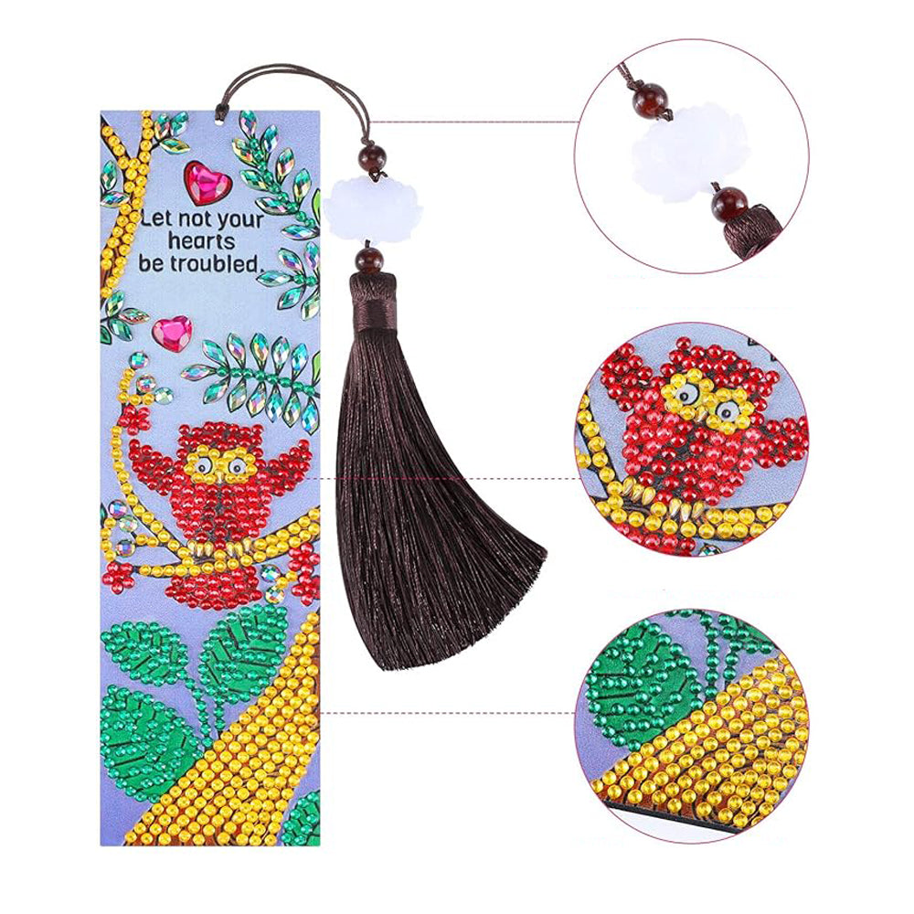 3St. Eule, Nest und Blumen Leder Lesezeichen Set Diamond Painting