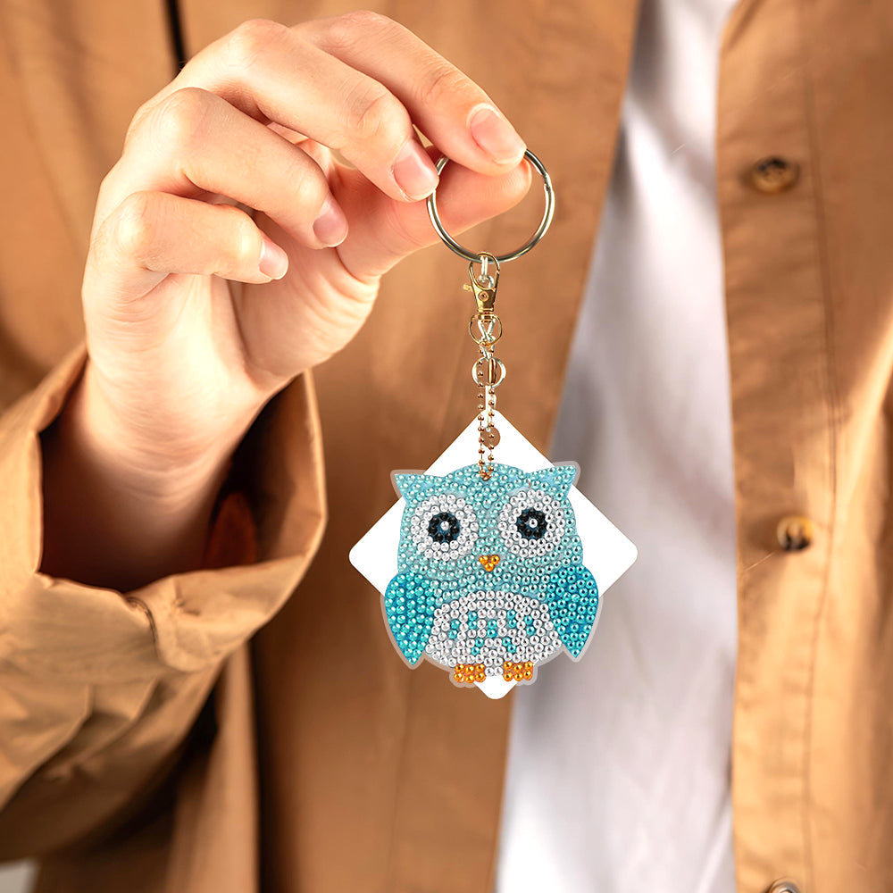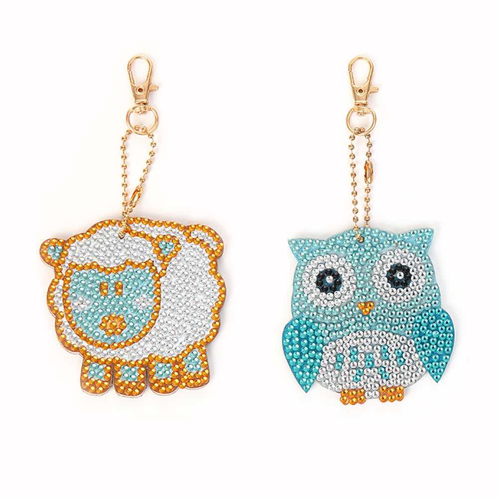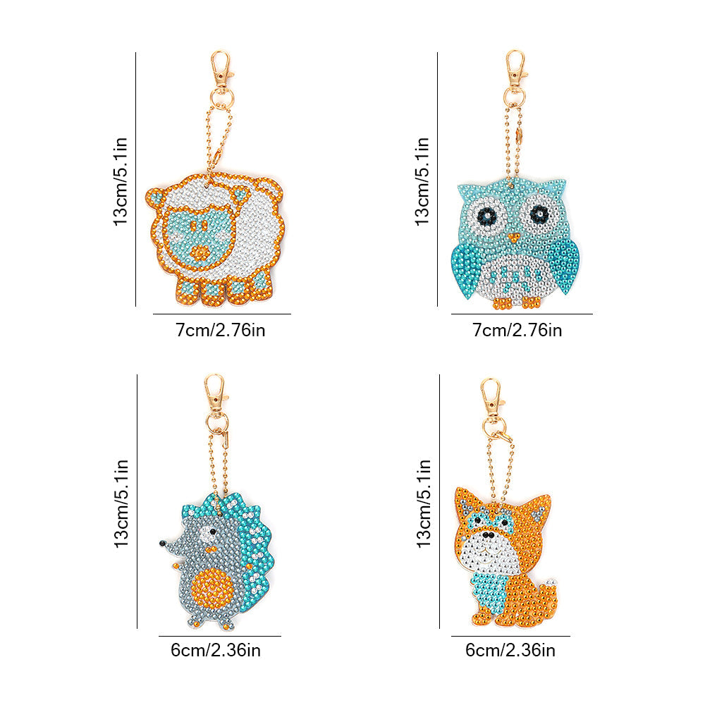 4Pcs Niedliche Baby-Tiere Acryl Doppelseitiger Schlüsselanhänger Diamond Painting