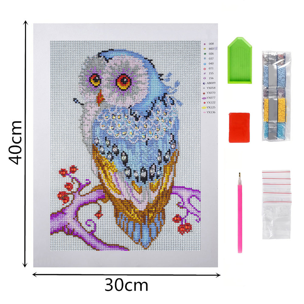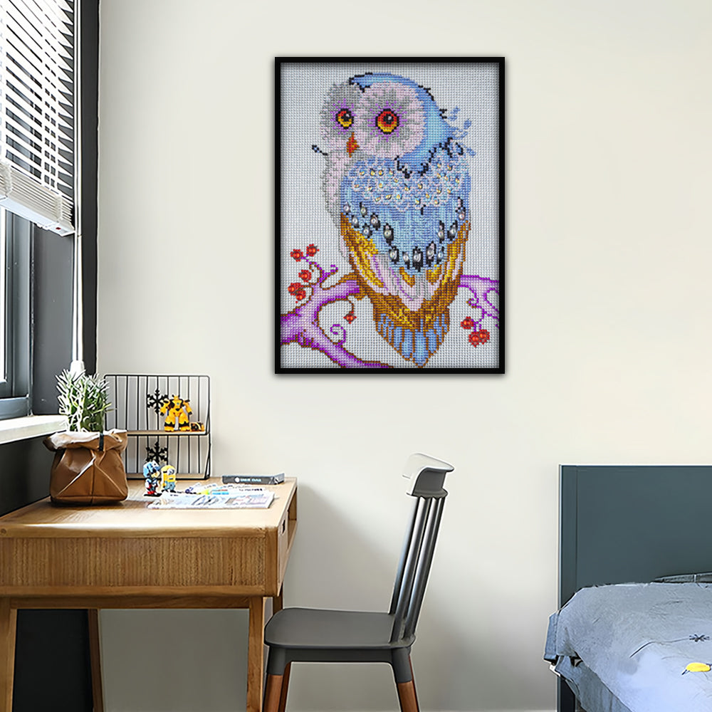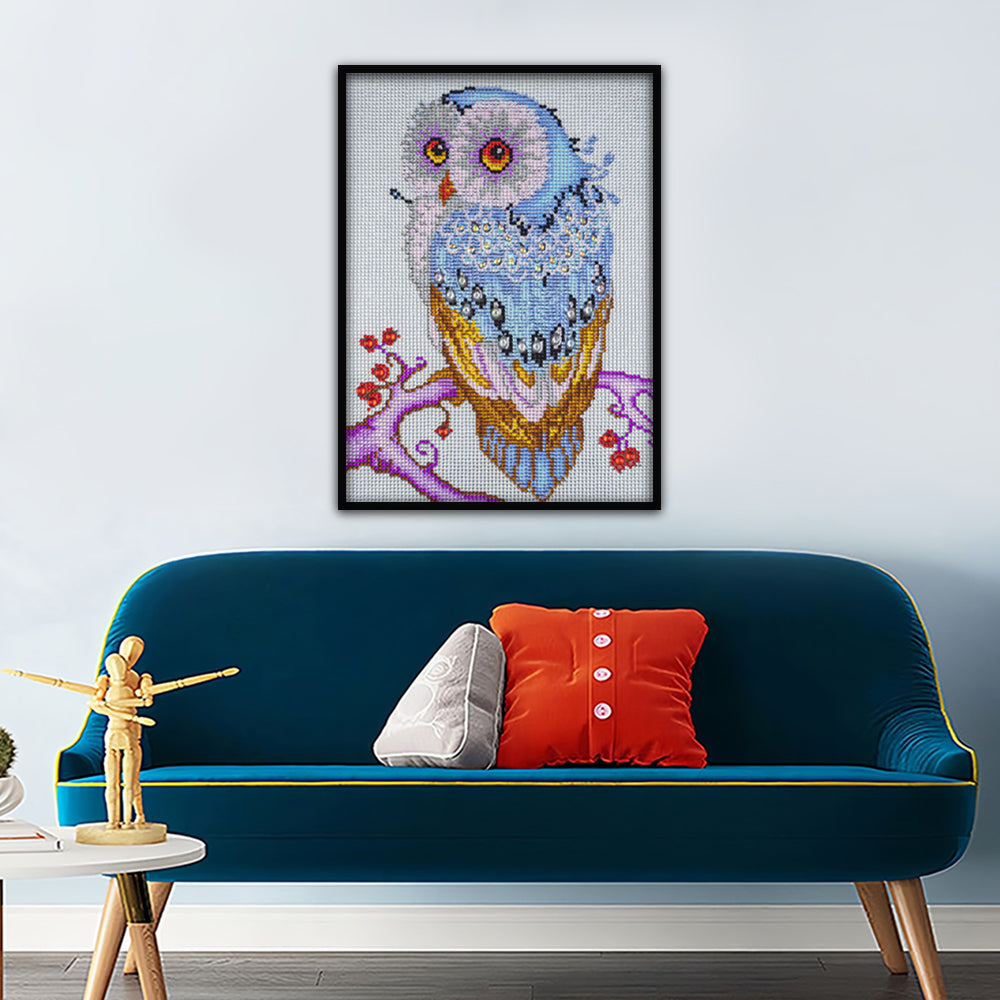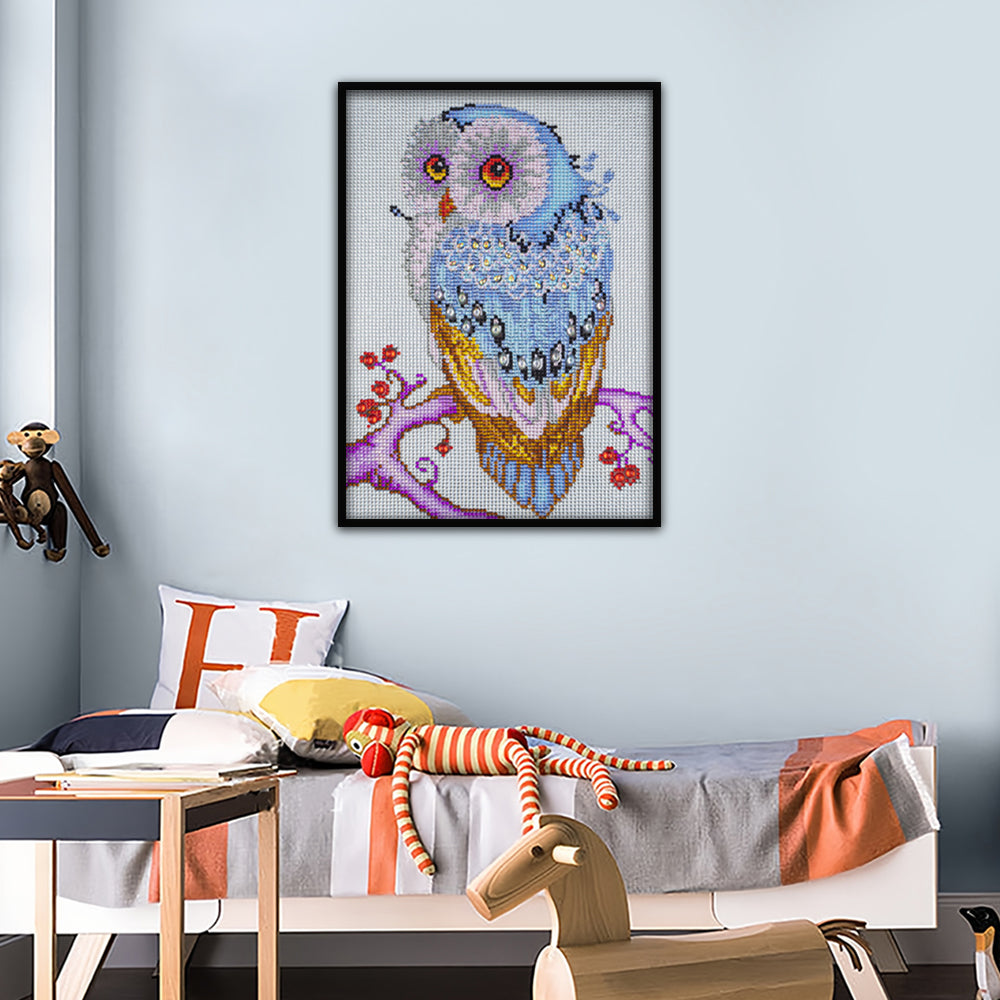 Blaue Eule auf Einem Baumzweig Sonderform Diamond Painting