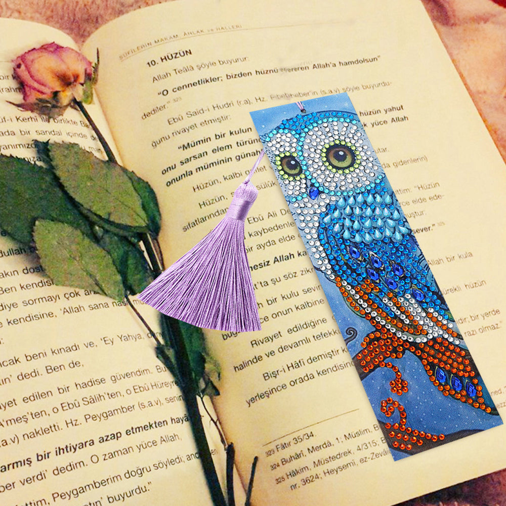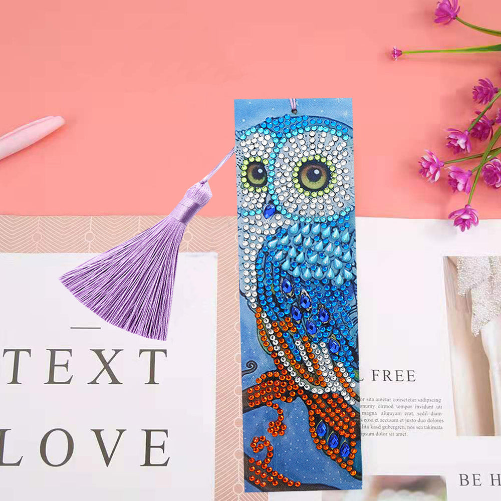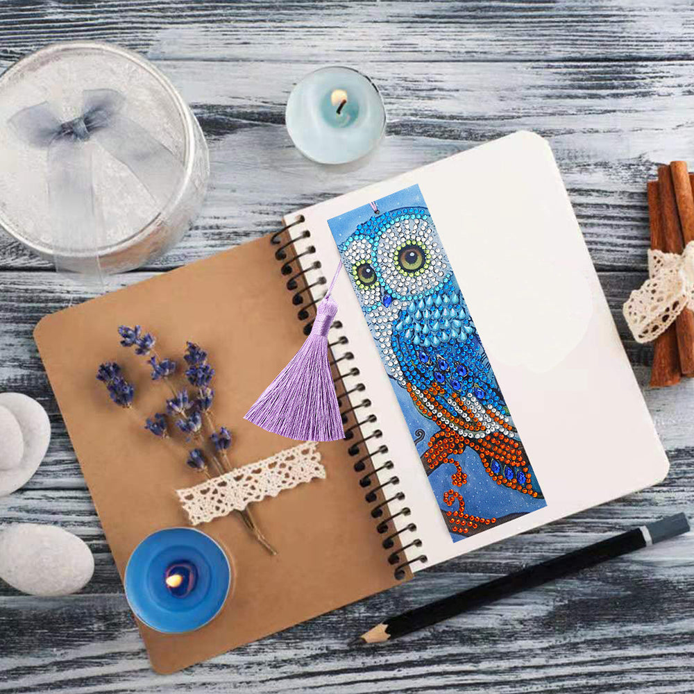 Blaue Eule Leder Lesezeichen Diamond Painting