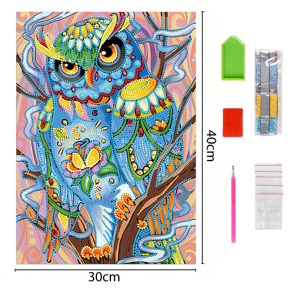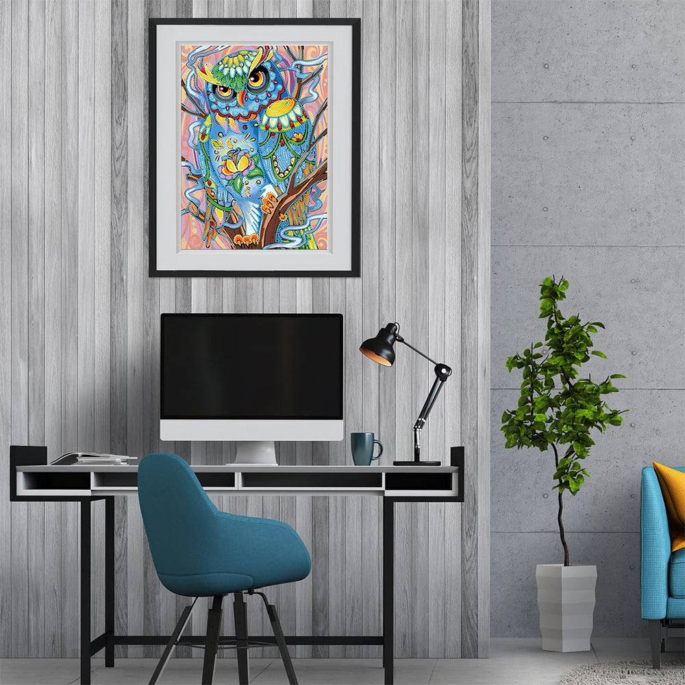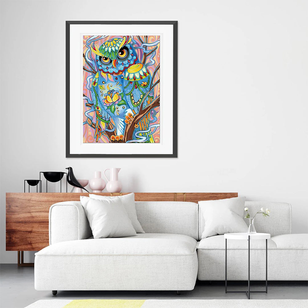 Blaue Eule Leuchtend Sonderform Diamond Painting