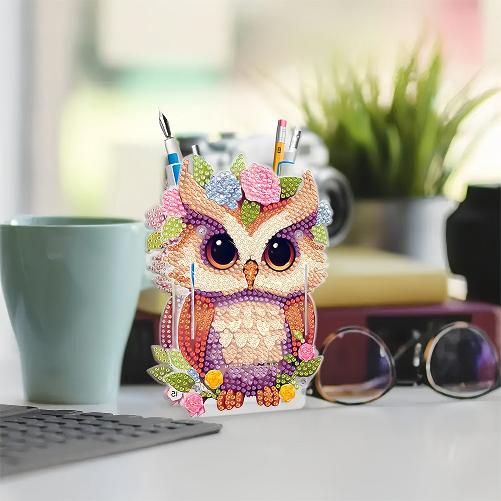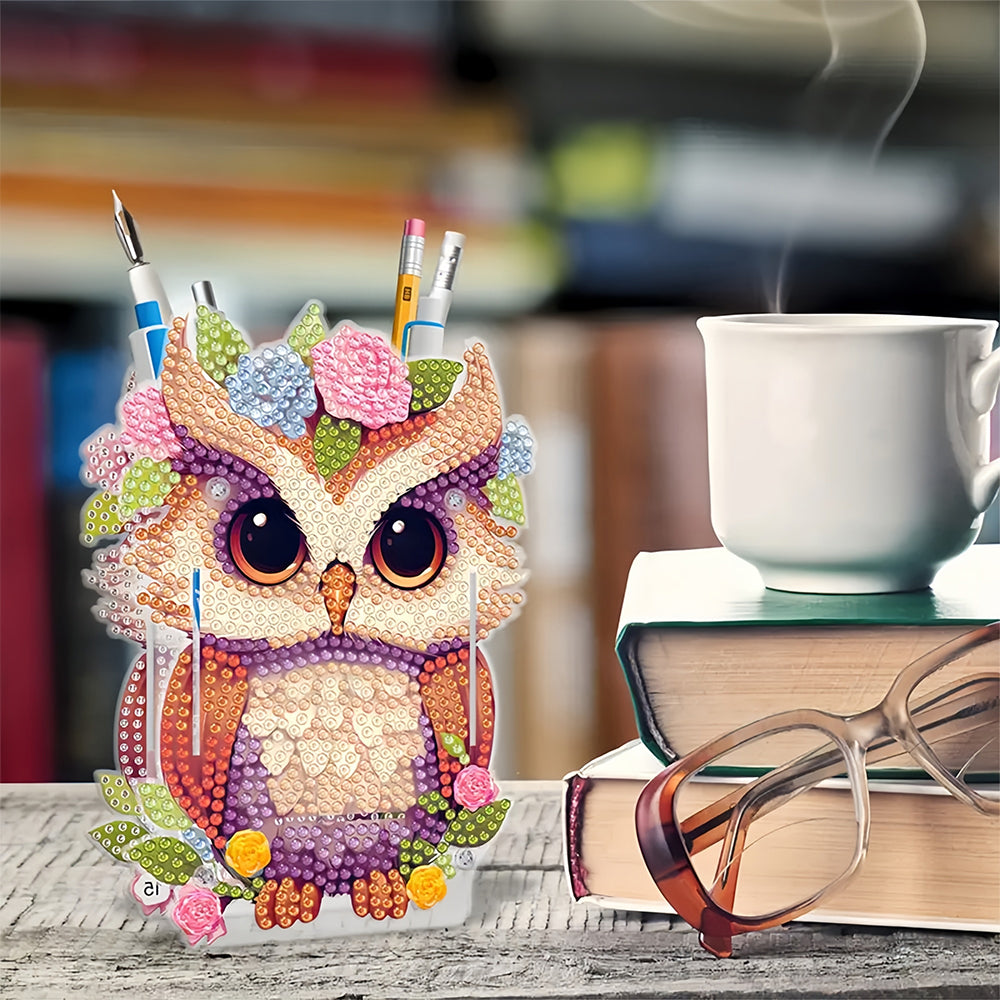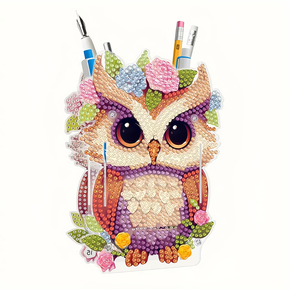 Eule mit Blumen Diamond Painting Stifthalter