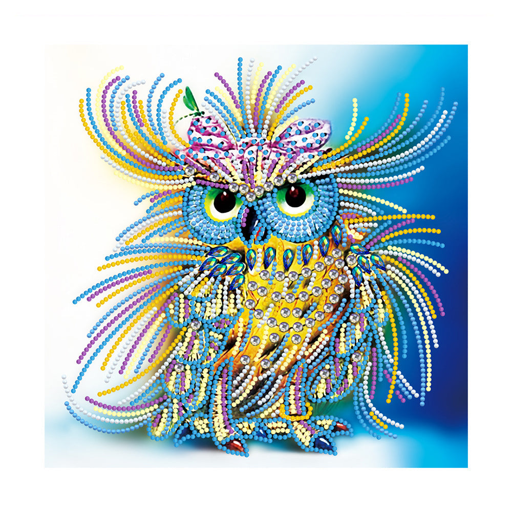 Gelbe und Blaue Eule Leuchtend Sonderform Diamond Painting