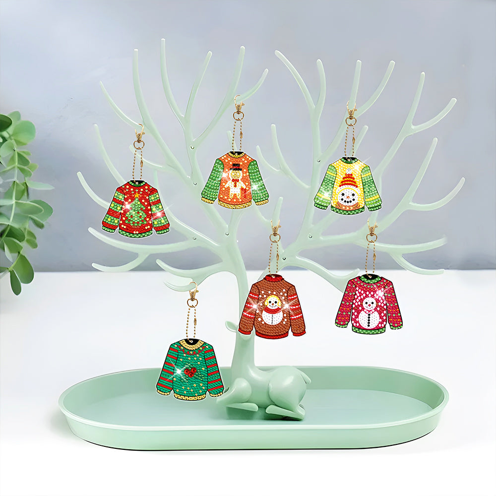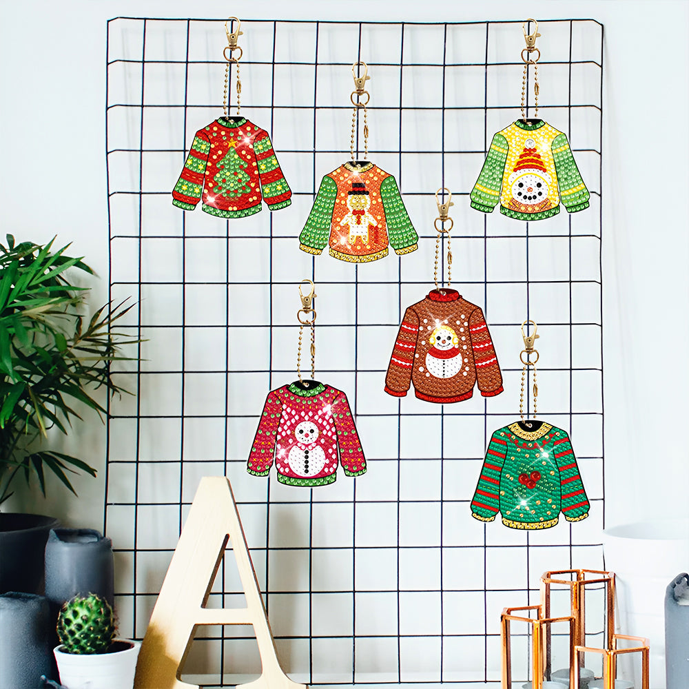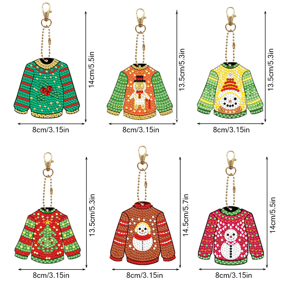 6Pcs Weihnachten Pullover Acryl Doppelseitiger Schlüsselanhänger Diamond Painting