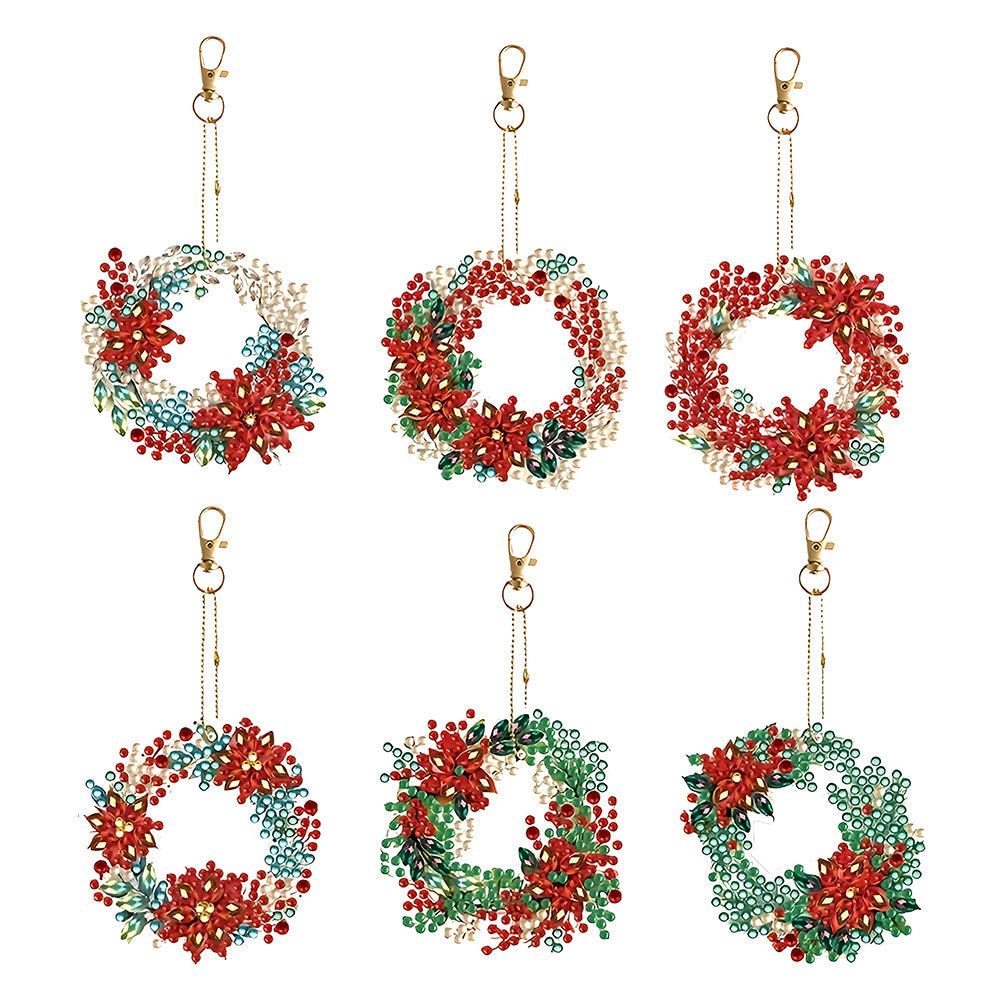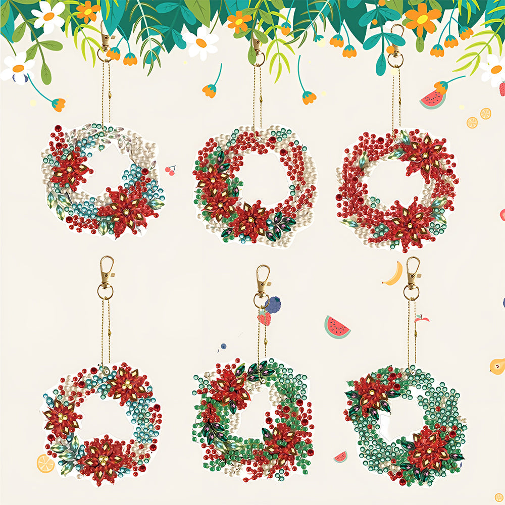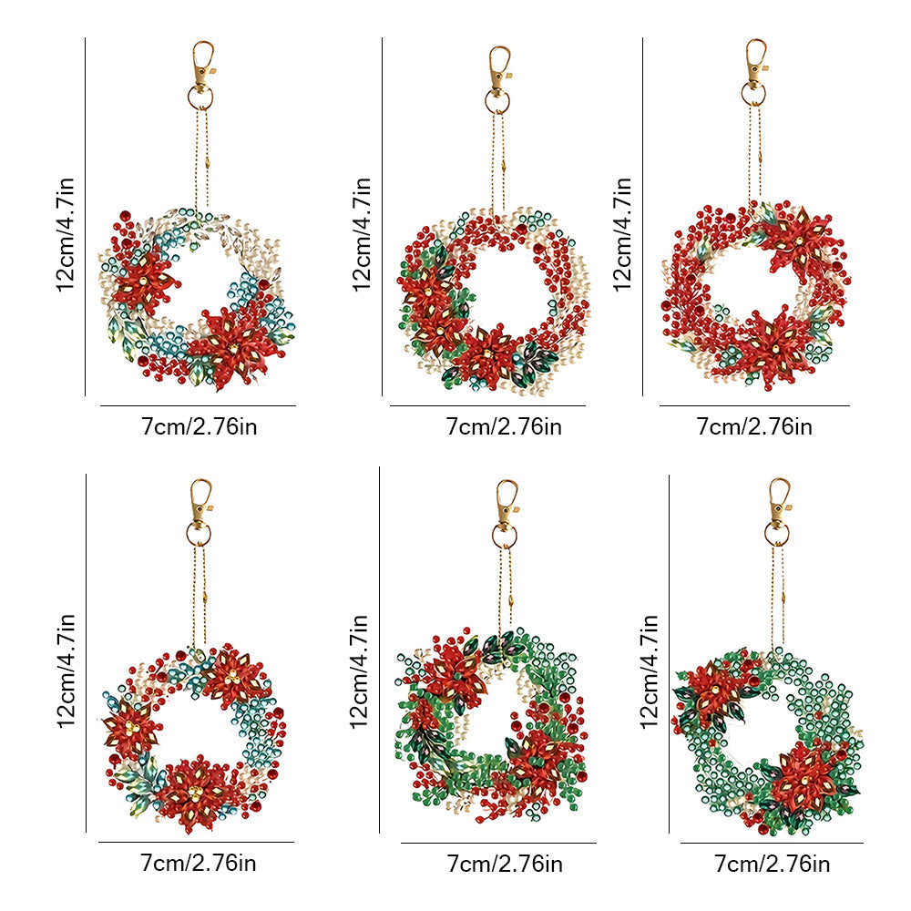 6Stück Weihnachtskranz Acryl Doppelseitiger Schlüsselanhänger Diamond Painting