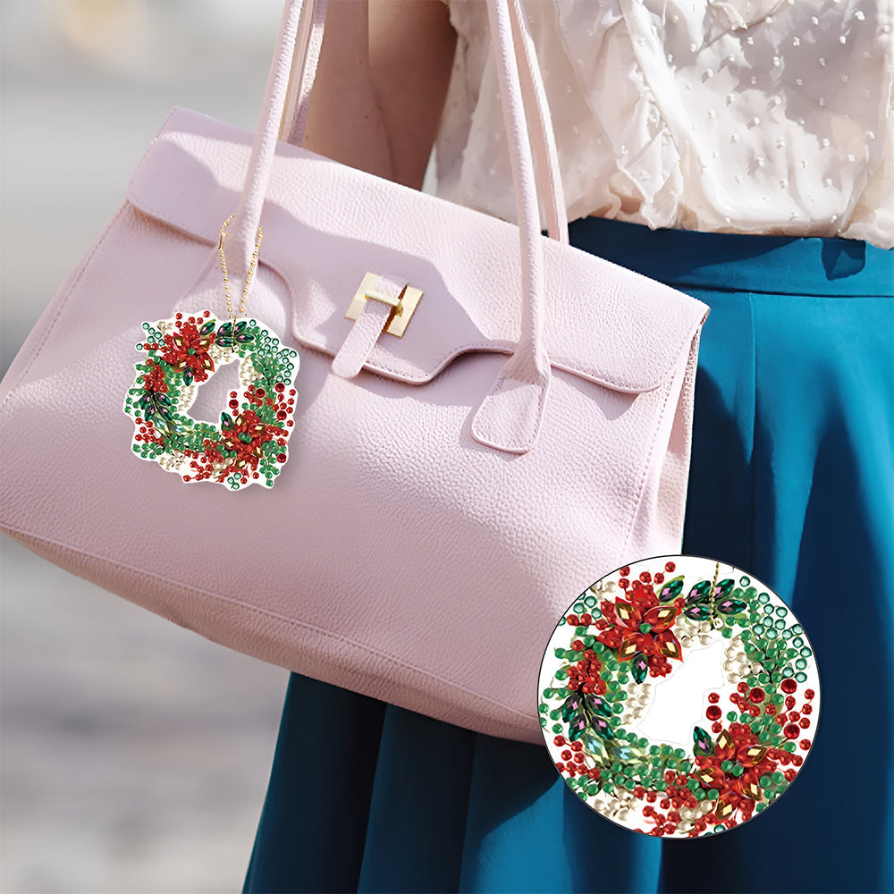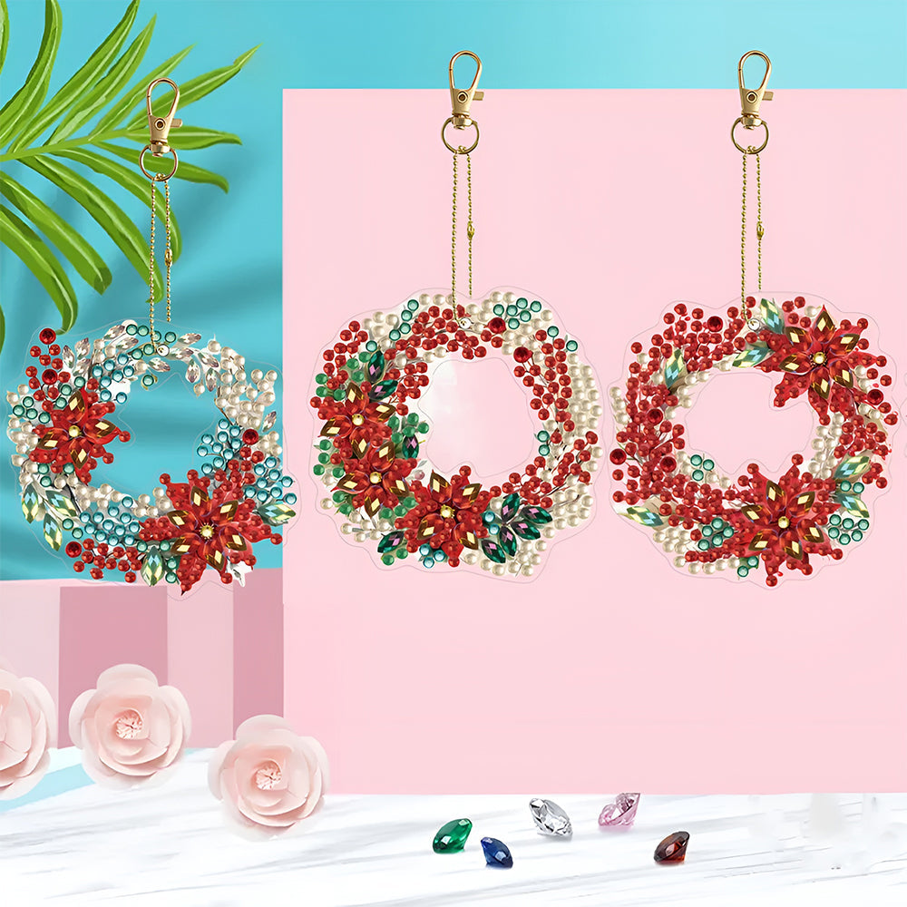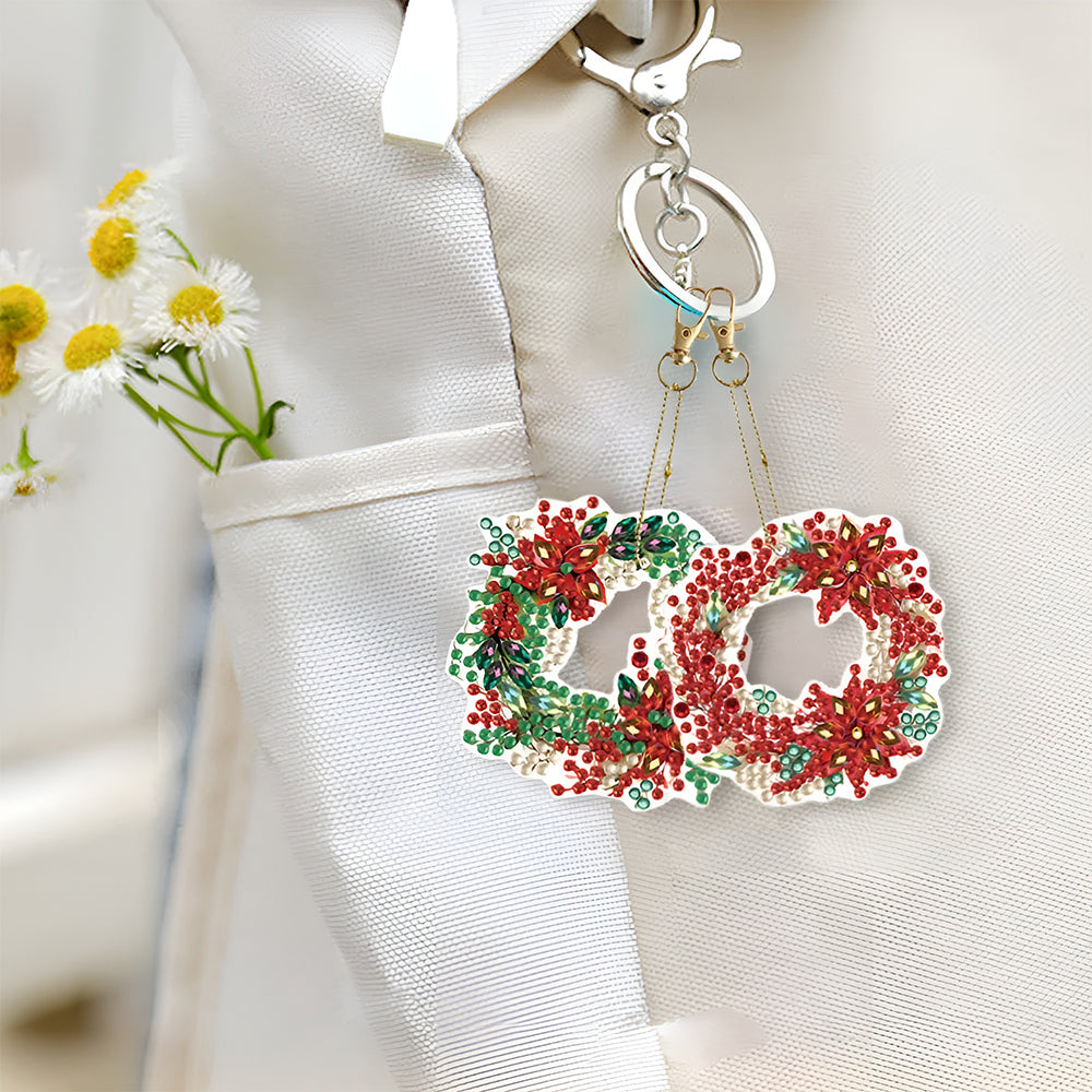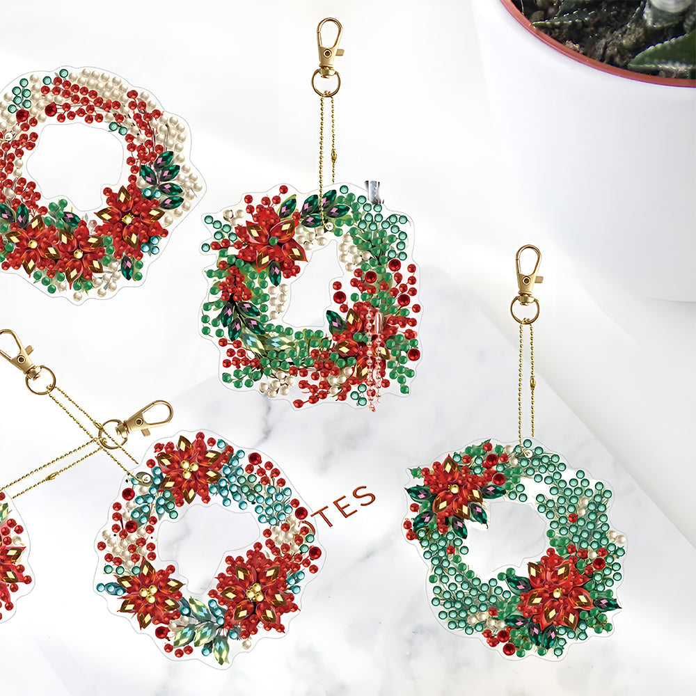6Stück Weihnachtskranz Acryl Doppelseitiger Schlüsselanhänger Diamond Painting