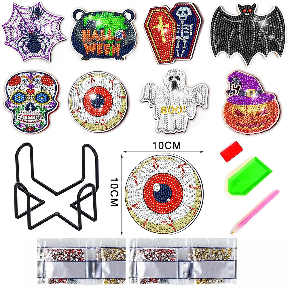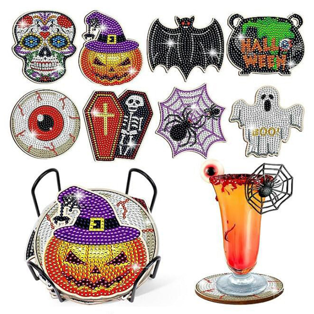 Halloween Pop-Muster Diamond Painting Untersetzer 8Pcs
