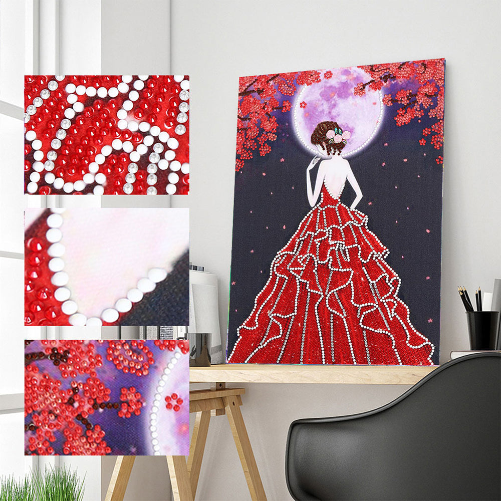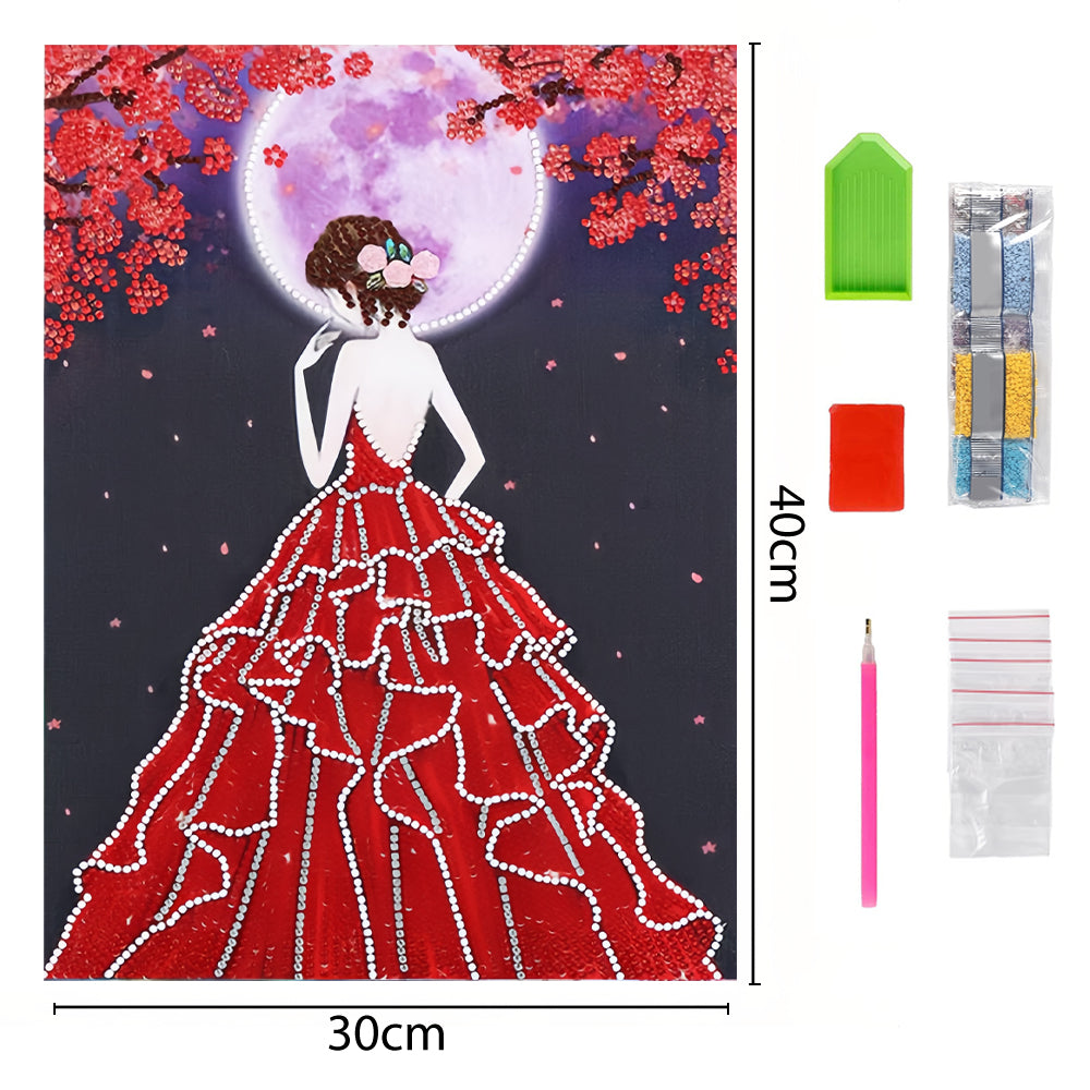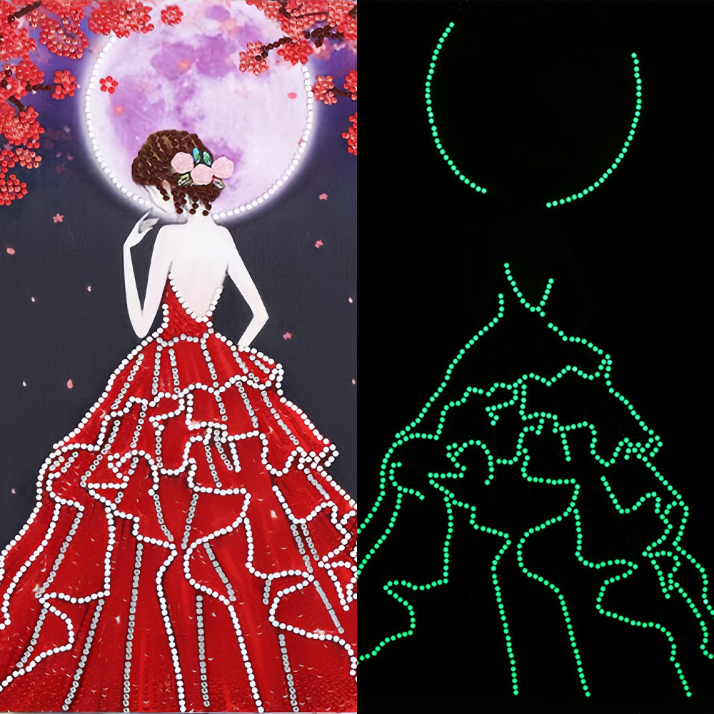 Frau im Roten Kleid Leuchtend Sonderform Diamond Painting