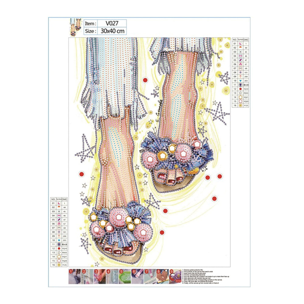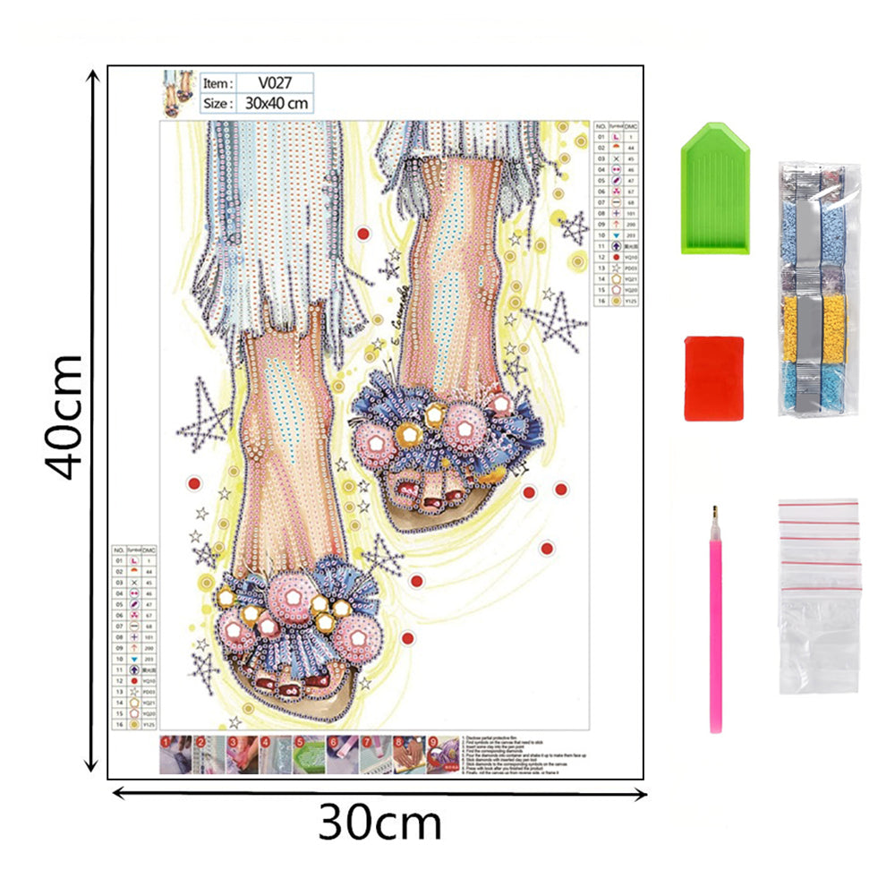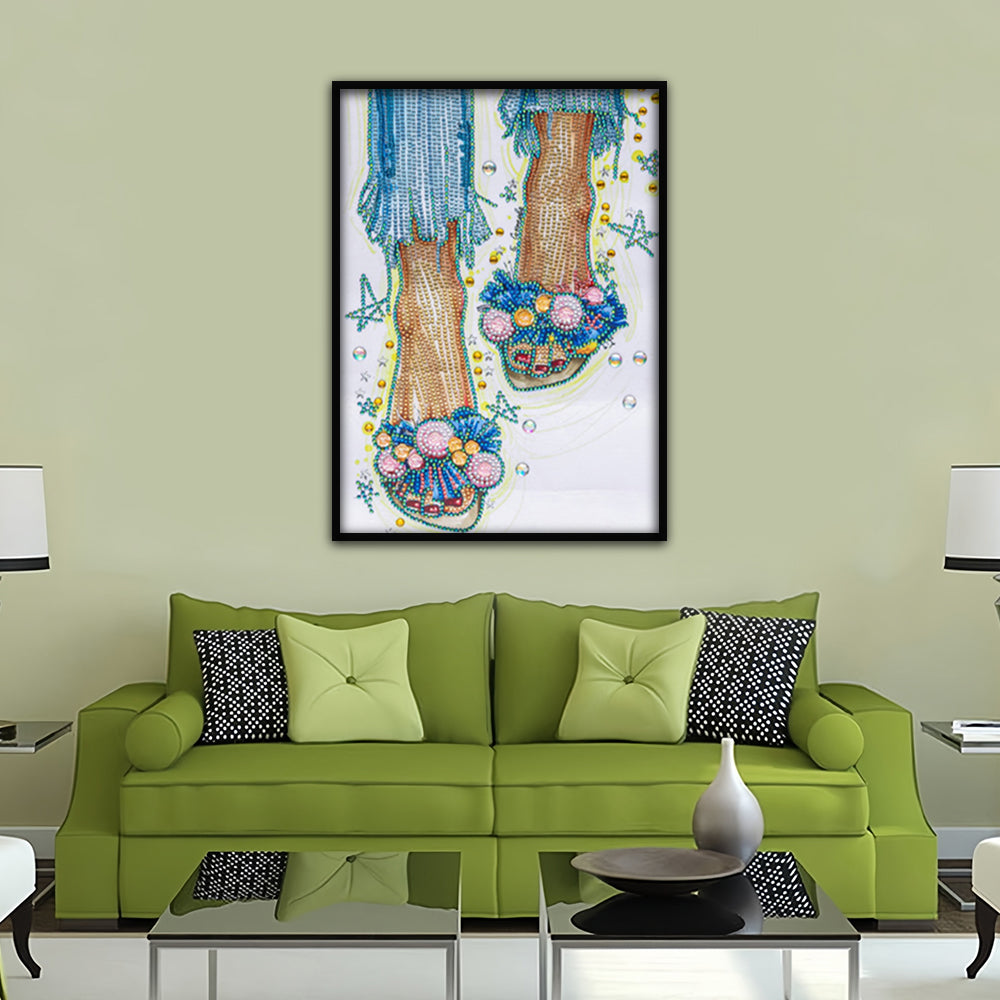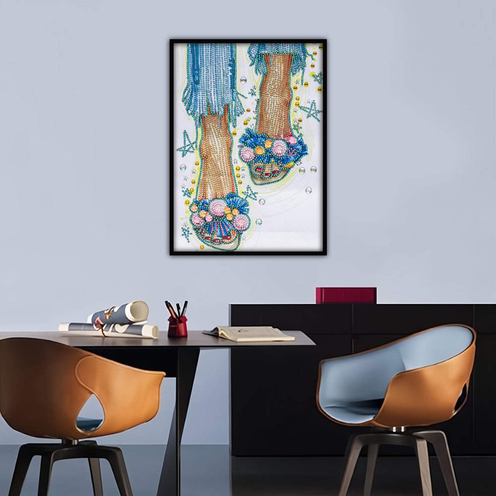 Mädchen Mit Geblümten Hausschuhen Sonderform Diamond Painting