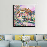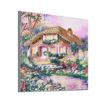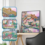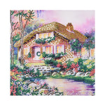 Gelbe Gartenhütte am Fluss Sonderform Diamond Painting