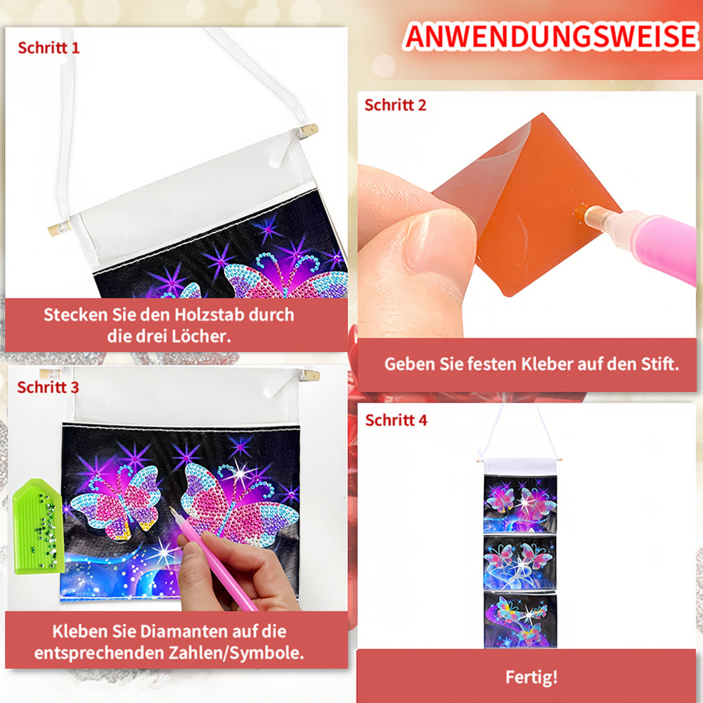 Fantasie Schmetterling und Blume Hängende Aufbewahrungstasche Diamond Painting