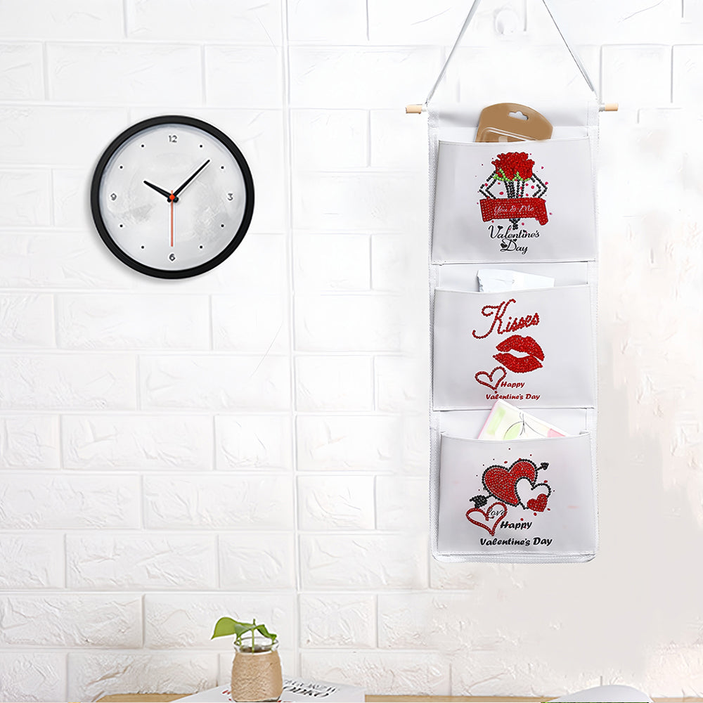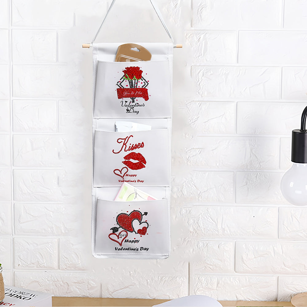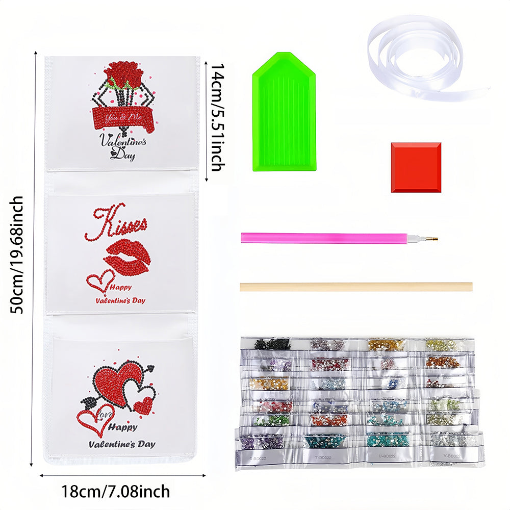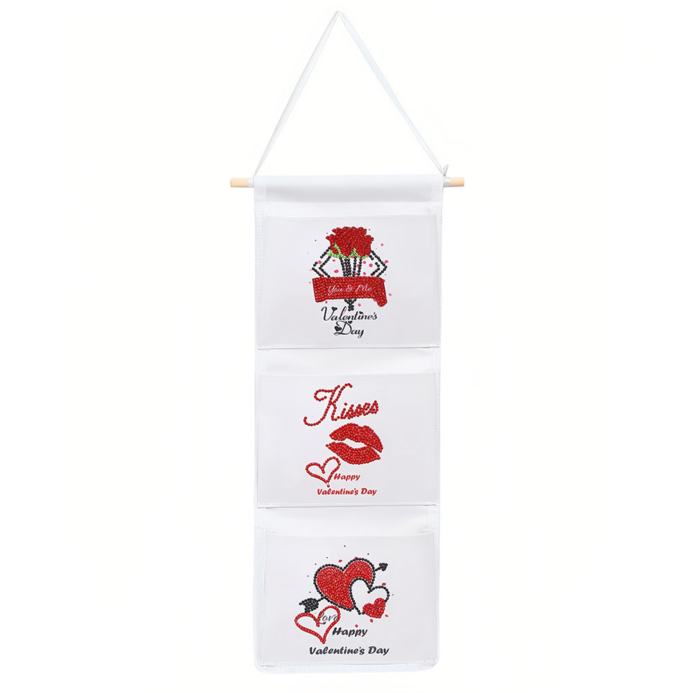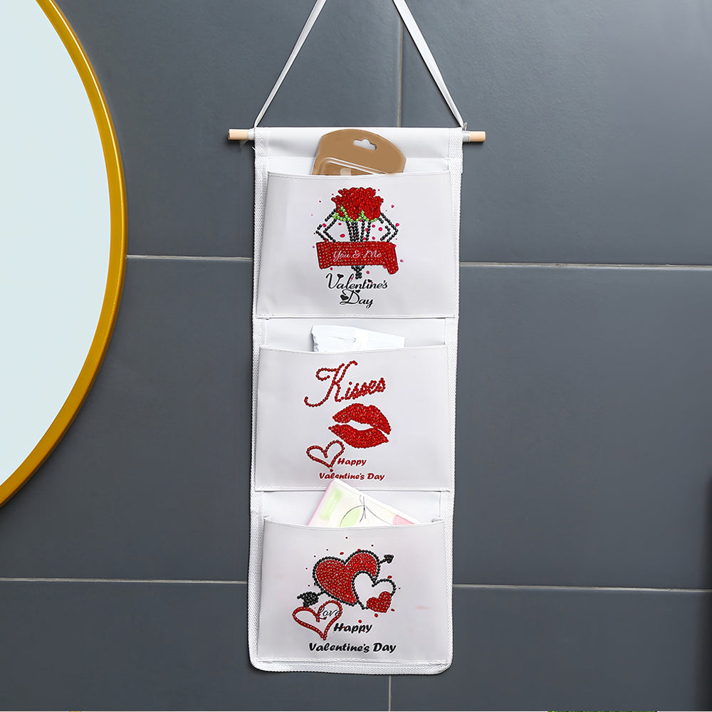 Rotes Herz und Blume Hängende Aufbewahrungstasche Diamond Painting