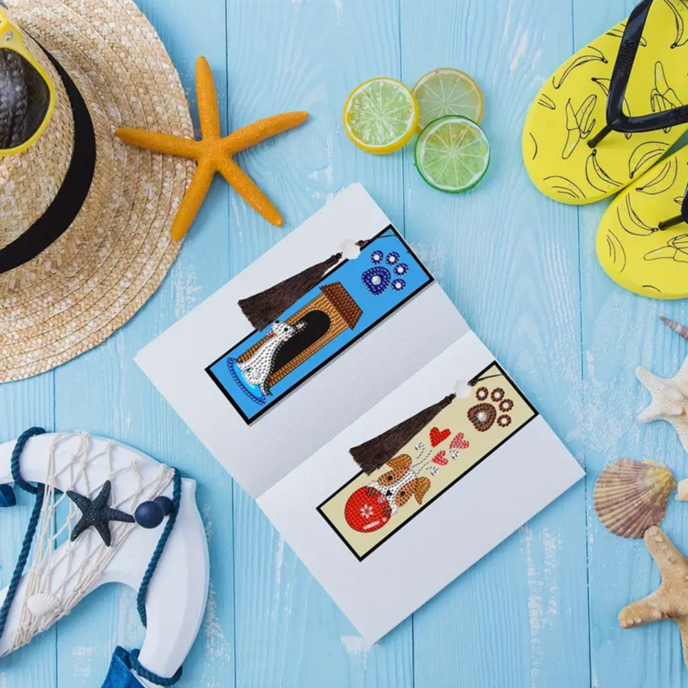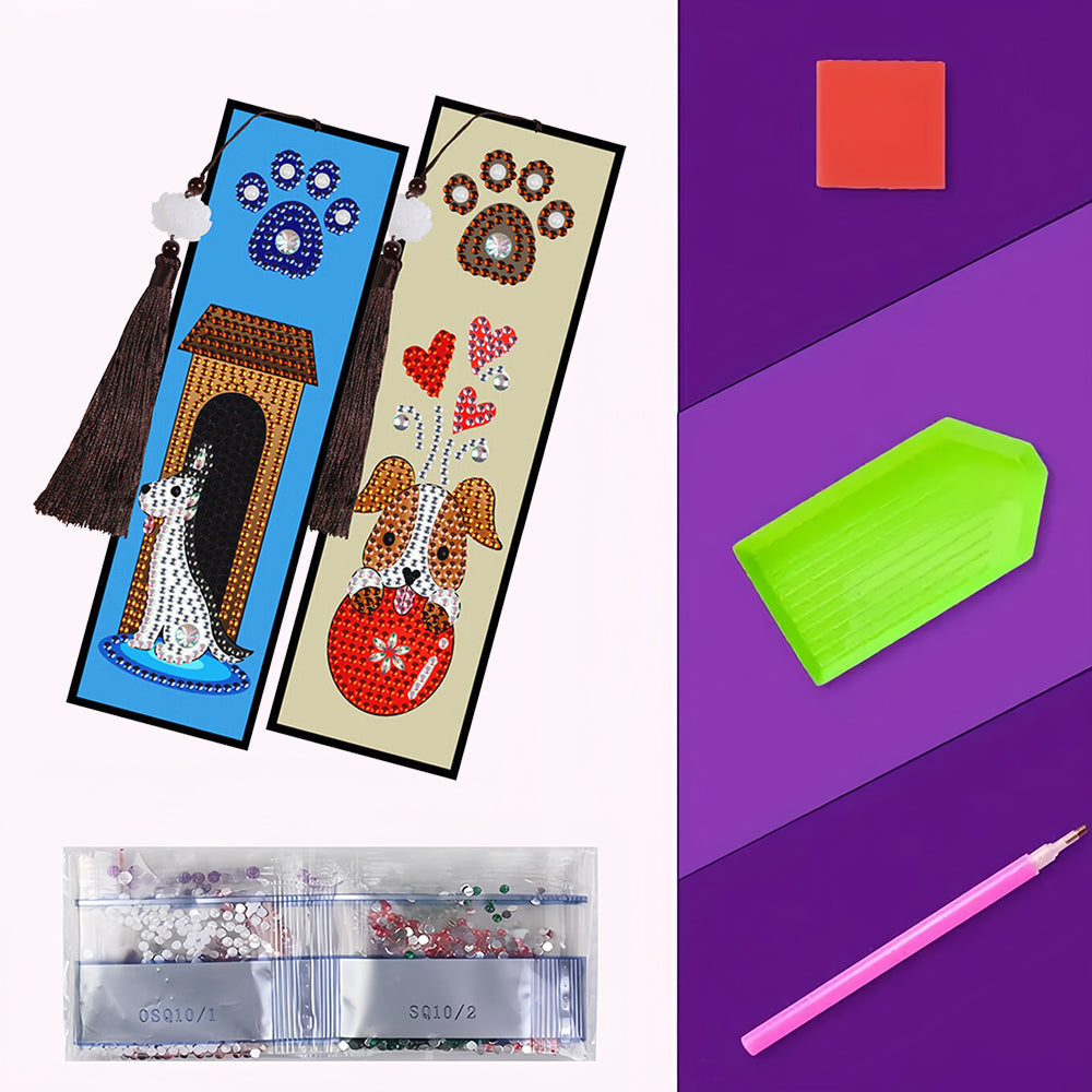 2/4St. Heim für Welpen und Lamm Leder Lesezeichen Set Diamond Painting