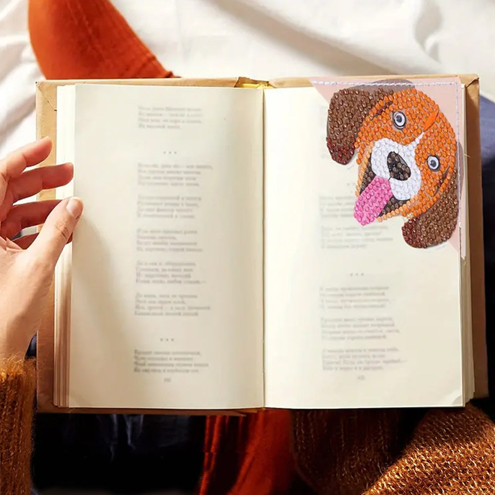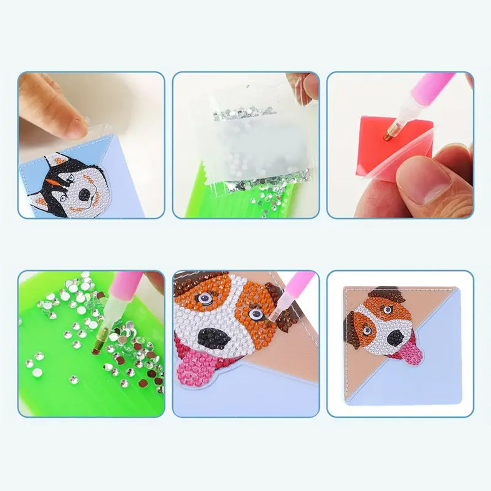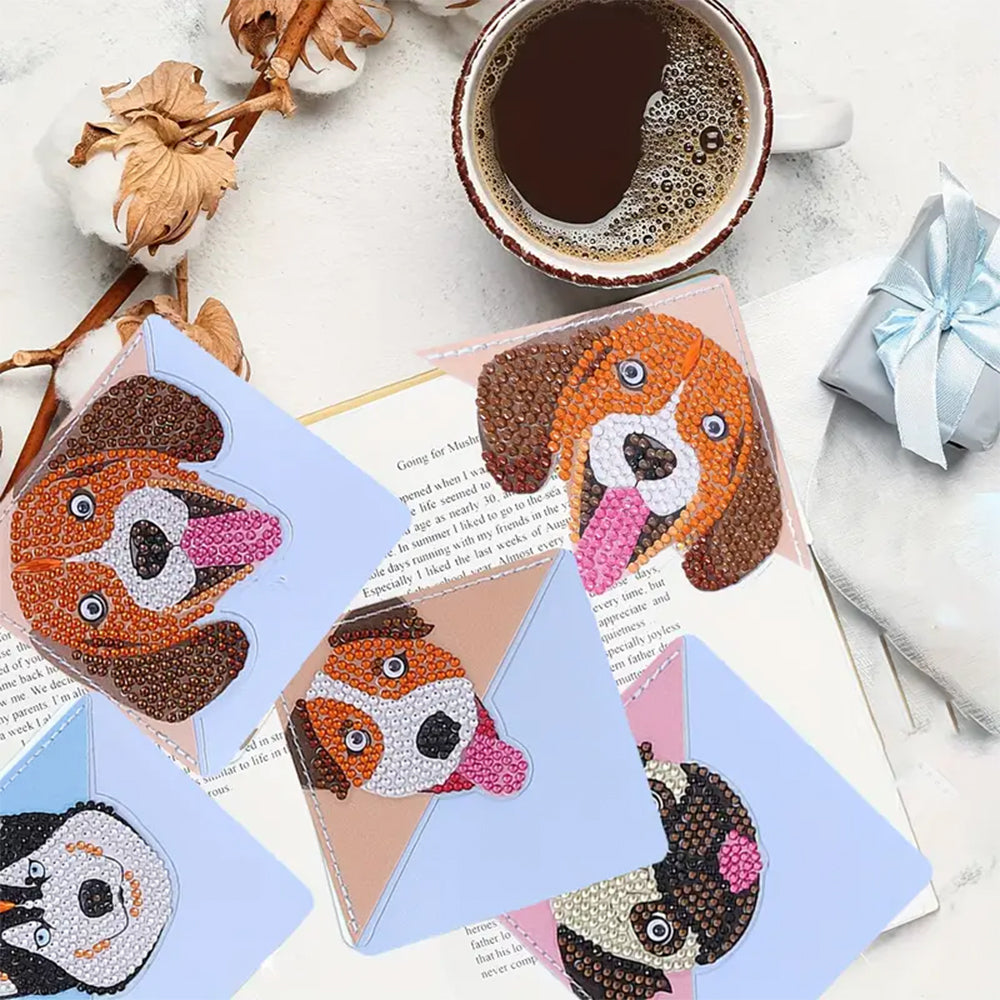 4St. Niedlicher Lächelnder Hund PU Ecke Abdeckung Lesezeichen Set Diamond Painting