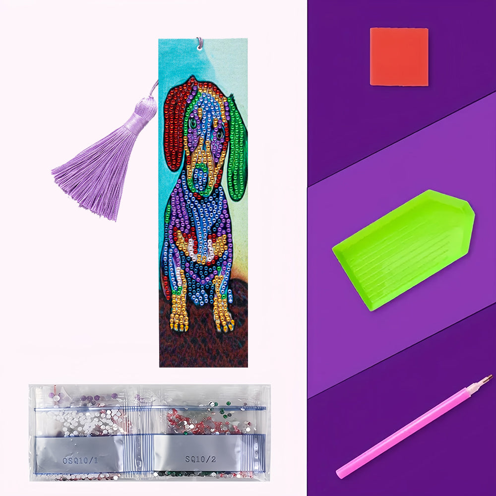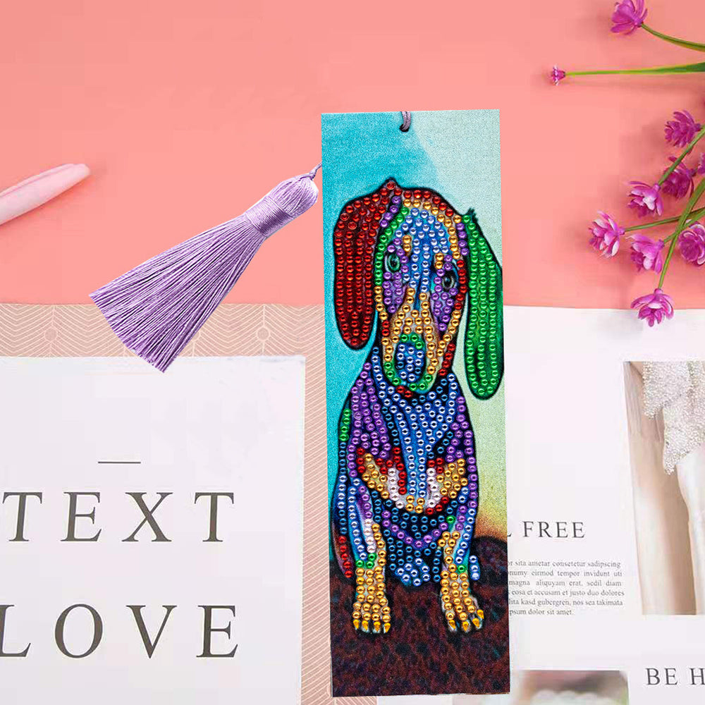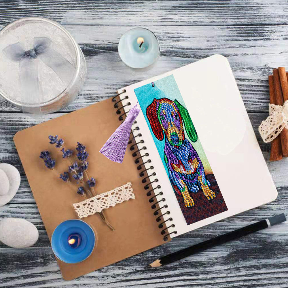 Bunter Dackel Leder Lesezeichen Diamond Painting
