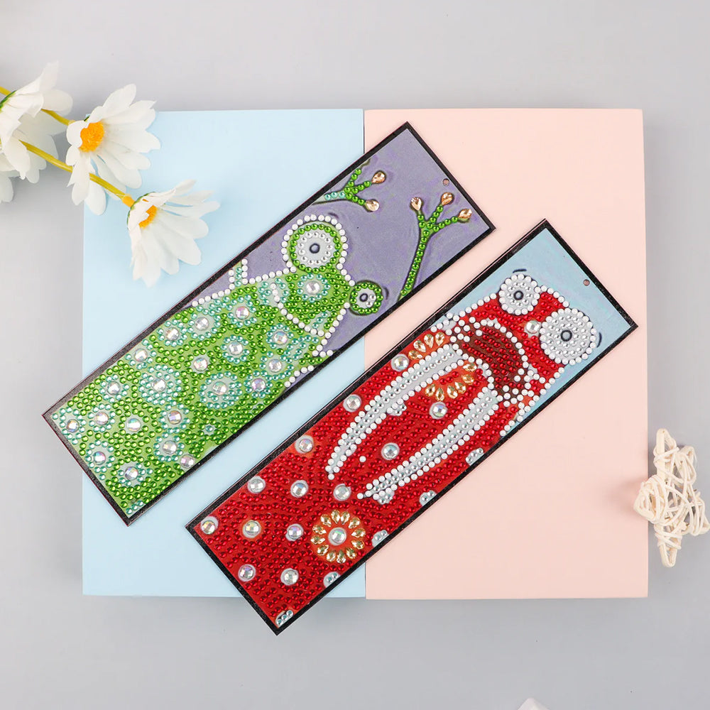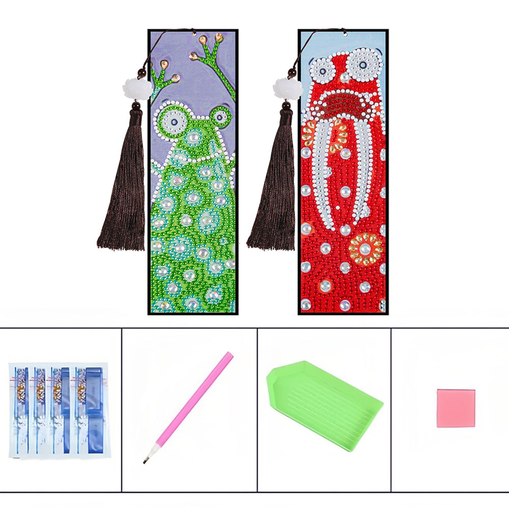 2St. Cartoon Frosch und Kaninchen Leder Lesezeichen Set Diamond Painting
