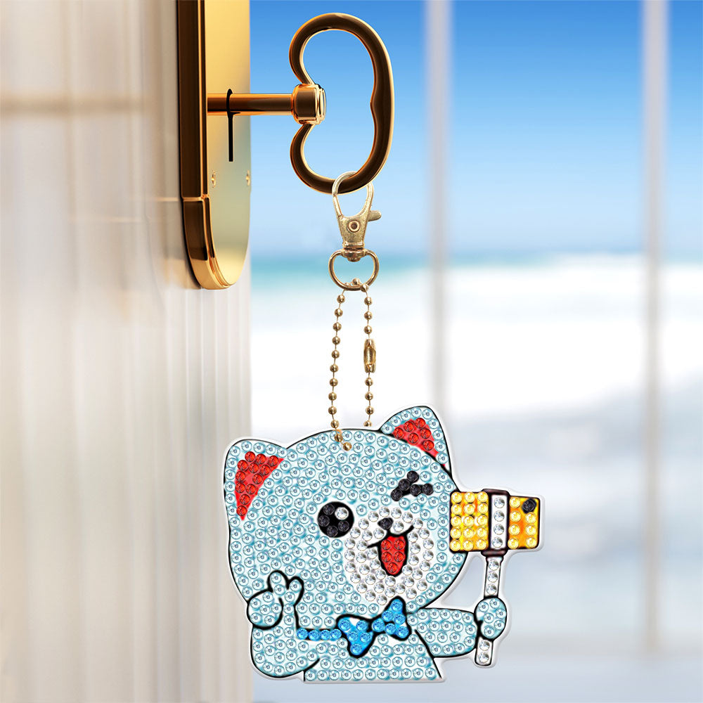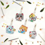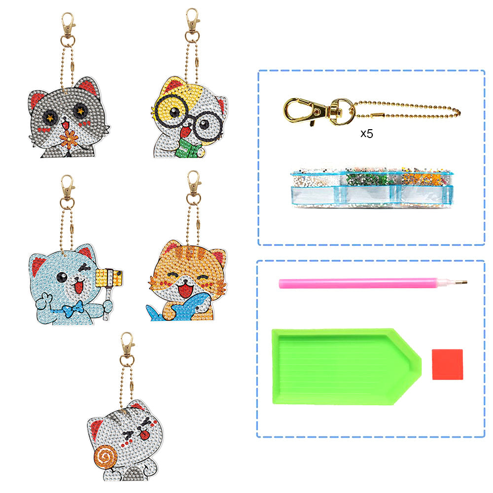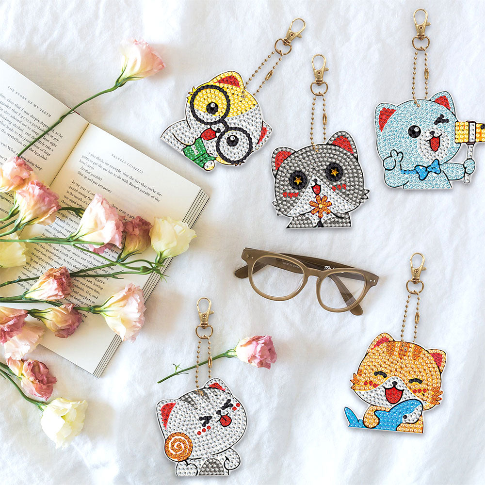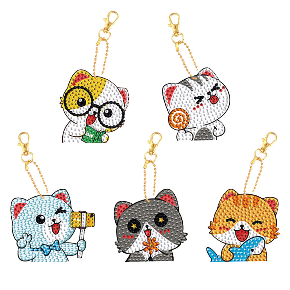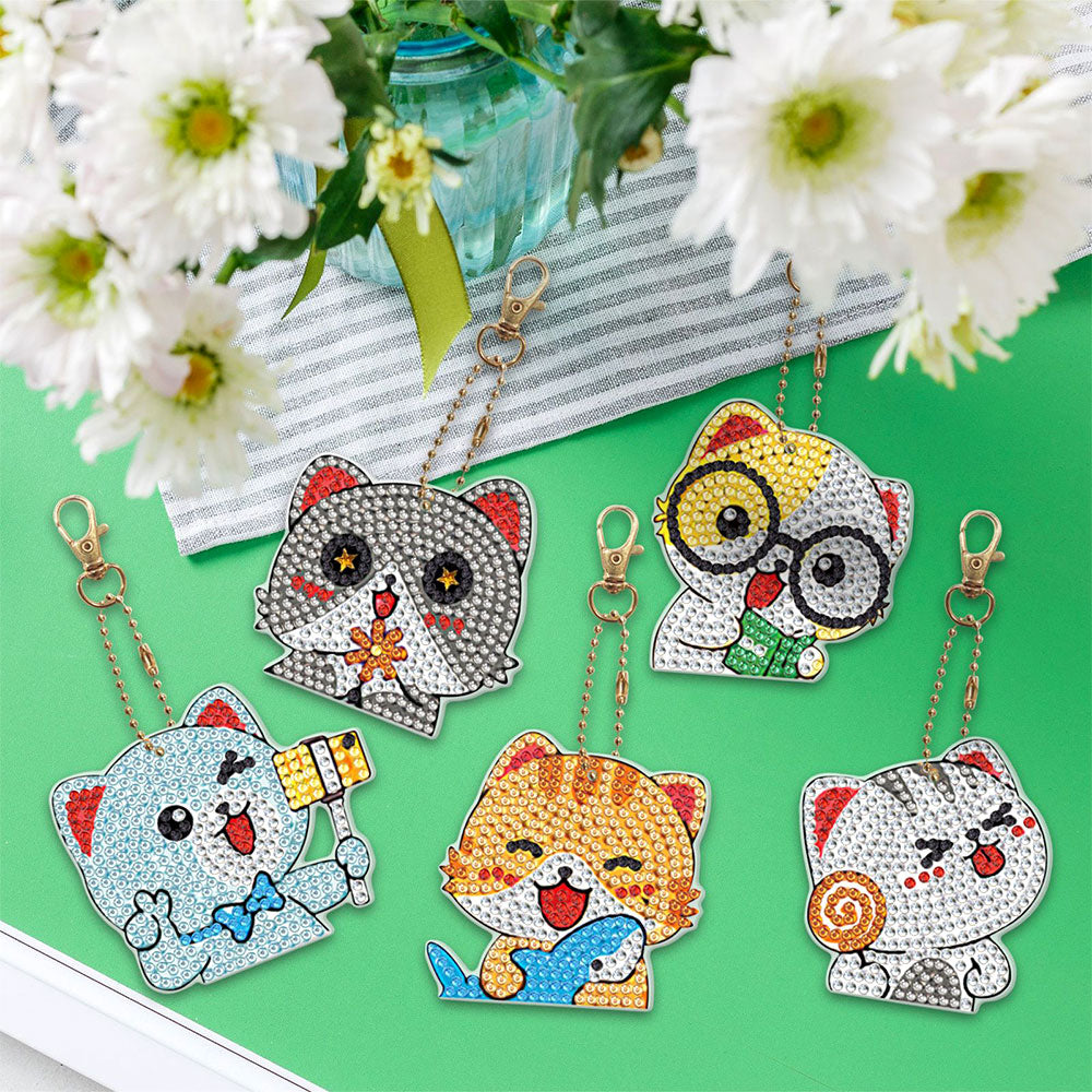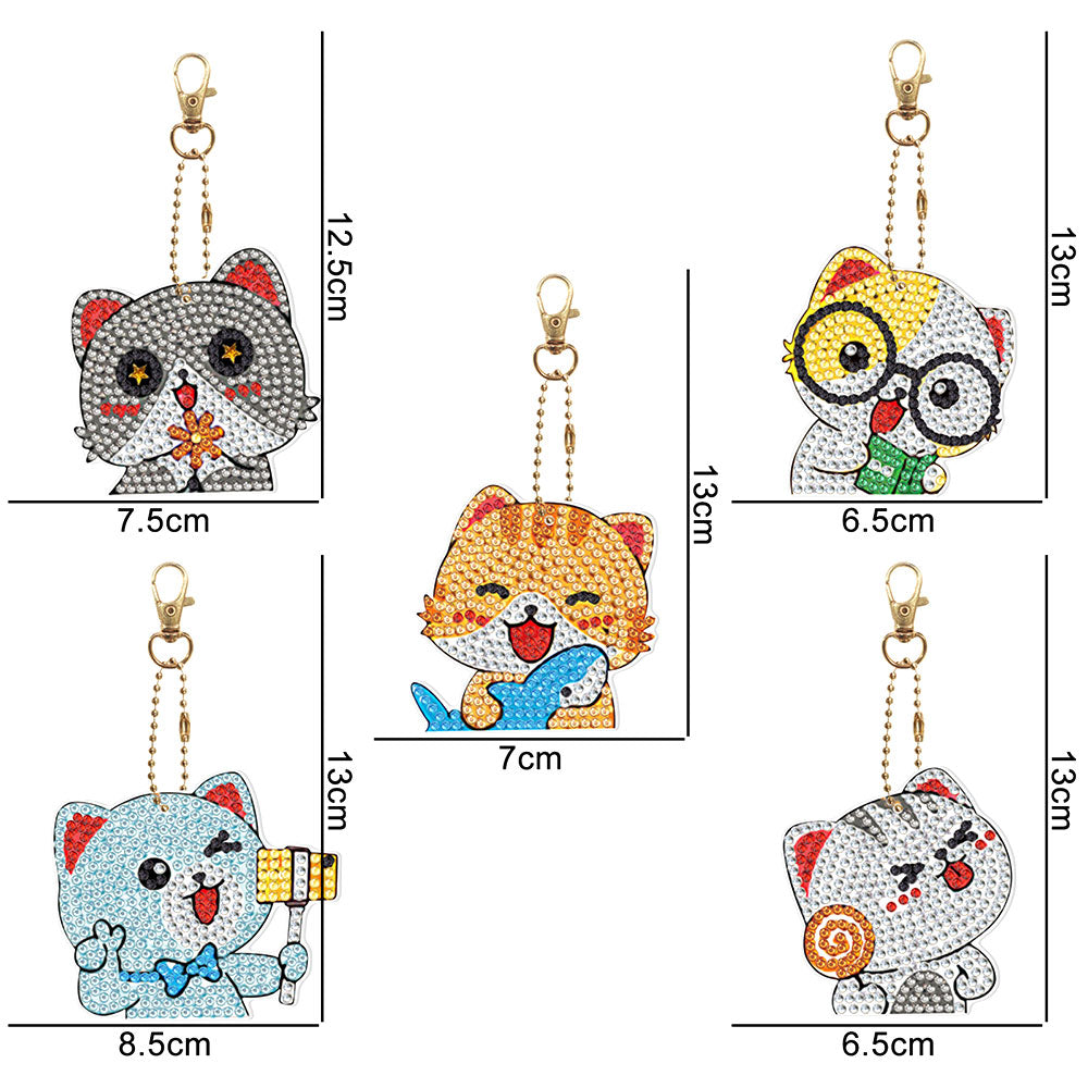 5Pcs Glückliche Katzen Acryl Doppelseitiger Schlüsselanhänger Diamond Painting