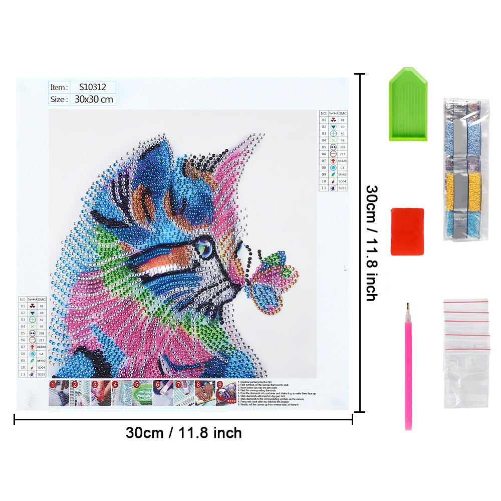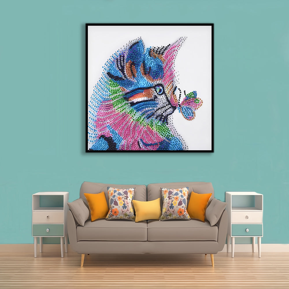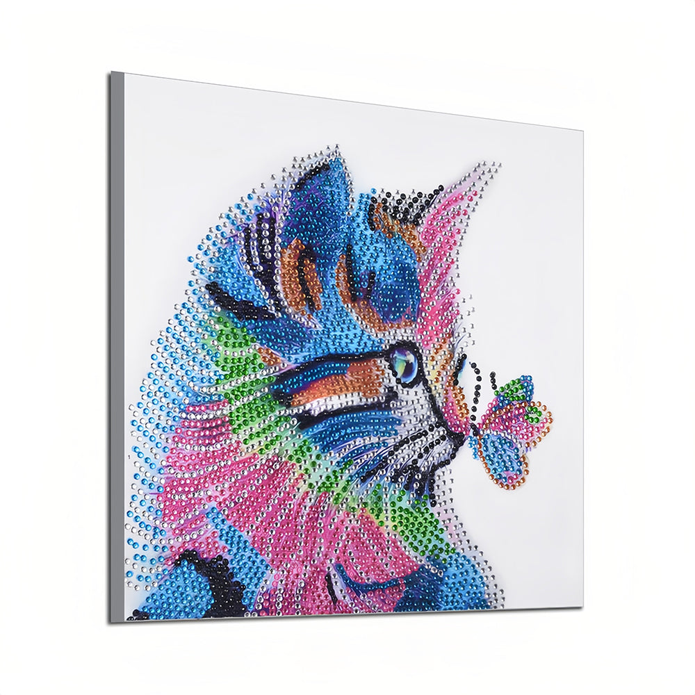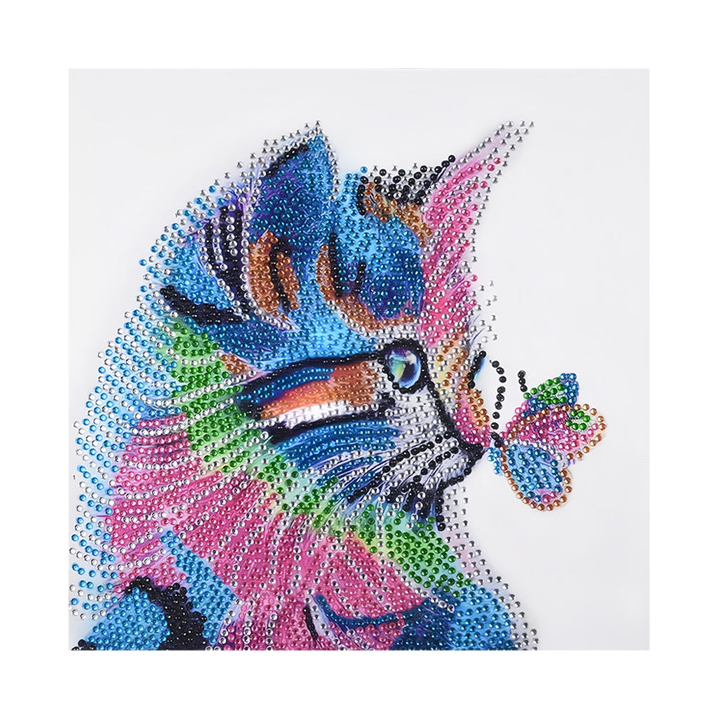 Bunte Katze und Schmetterling Sonderform Diamond Painting