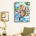 Katze auf einem Kirschbaum, Speziell geformte Diamanten Diamond Painting