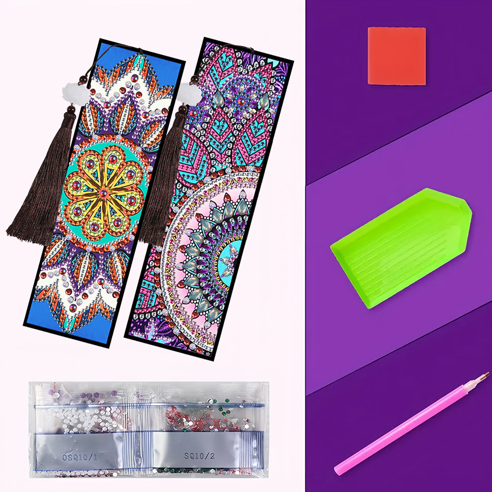 2/4St. Buntes Mandala Leder Lesezeichen Set Diamond Painting