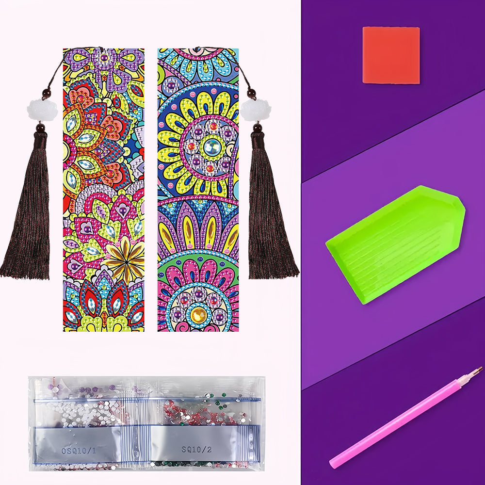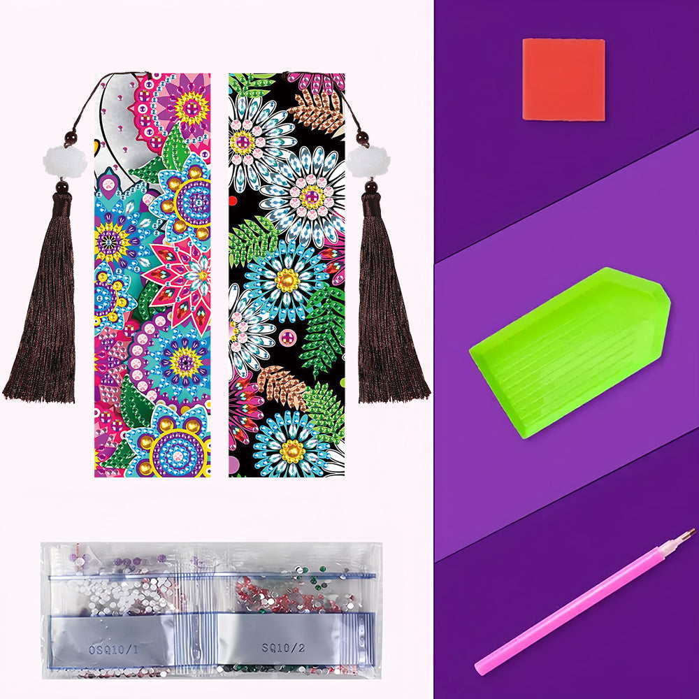2/4St. Chrysanthemen Mandala Leder Lesezeichen Set Diamond Painting