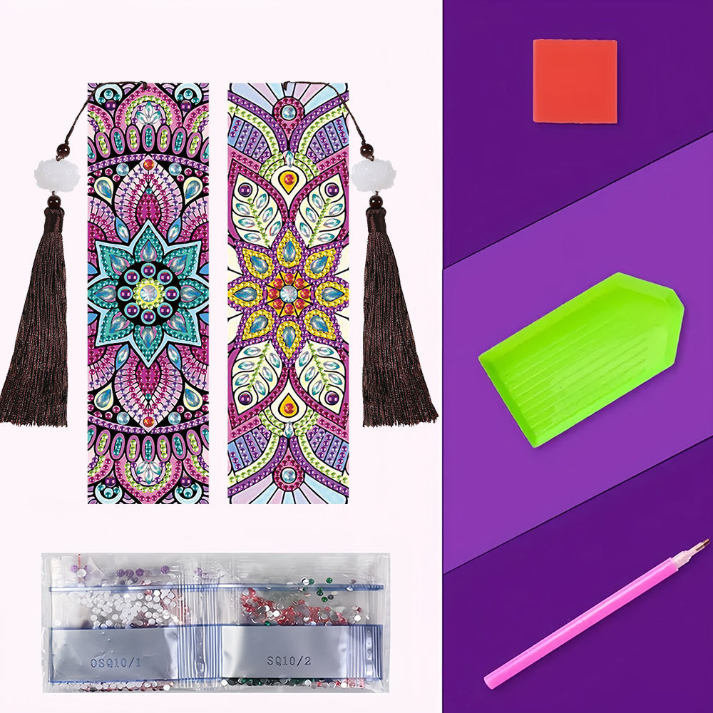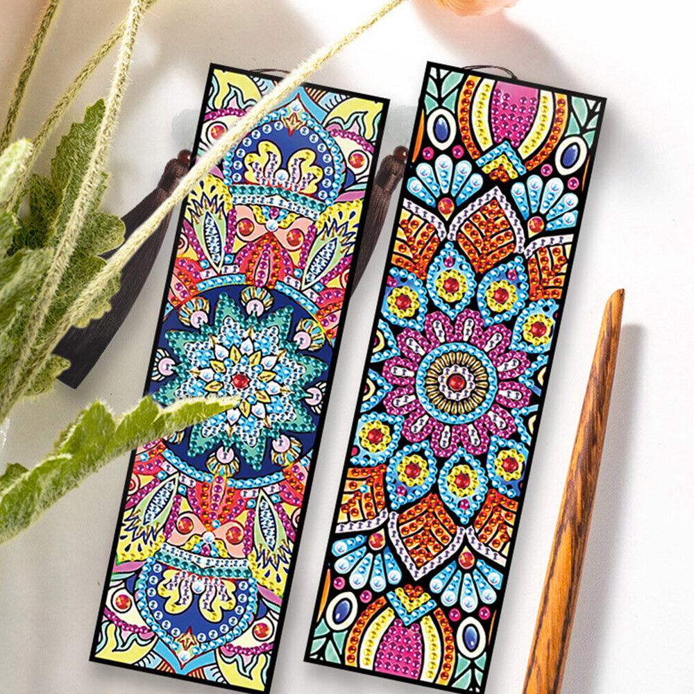 2/4St. Lotus Mandala Leder Lesezeichen Set Diamond Painting