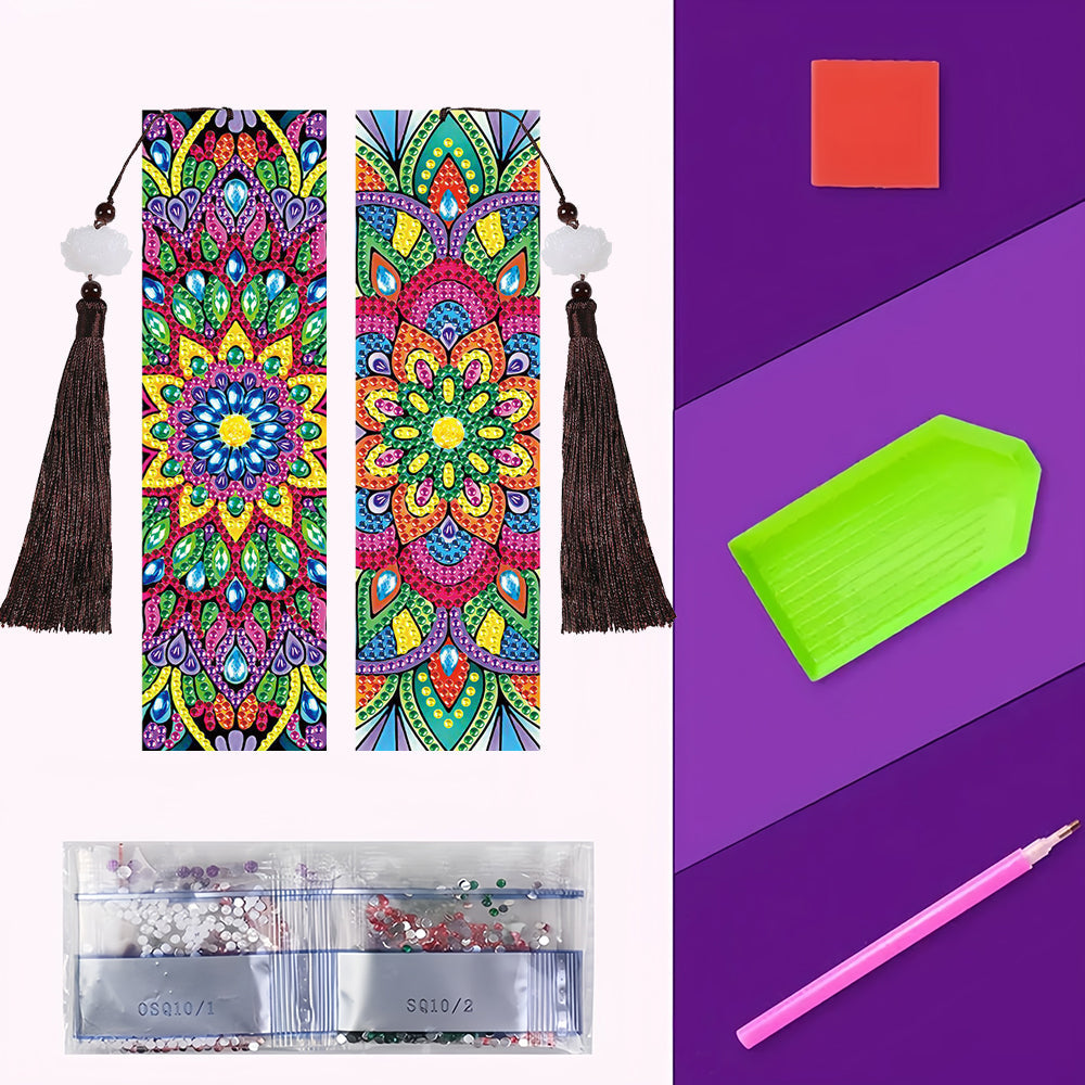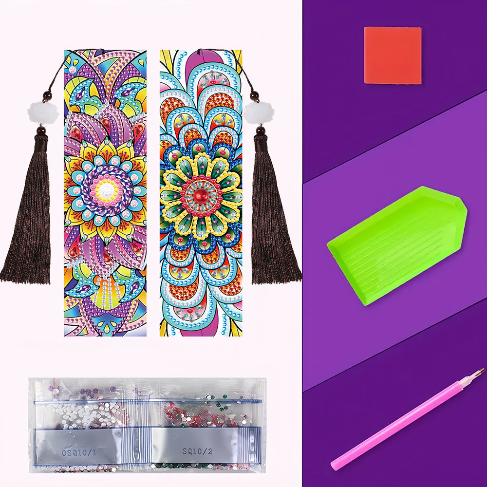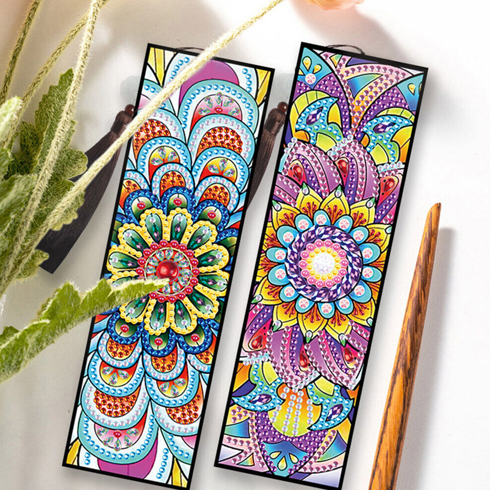 2/4St. Lotus Mandala Leder Lesezeichen Set Diamond Painting