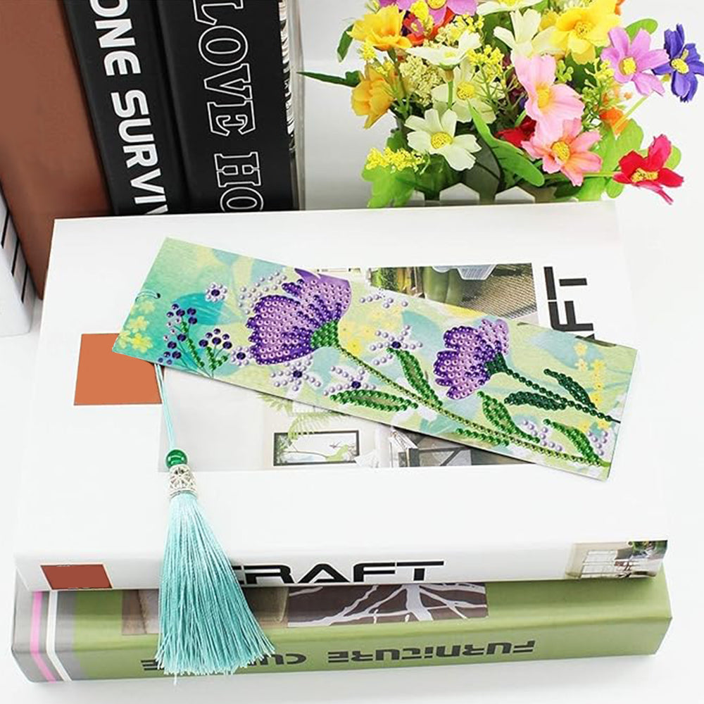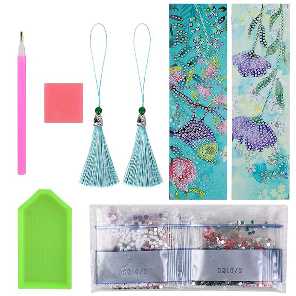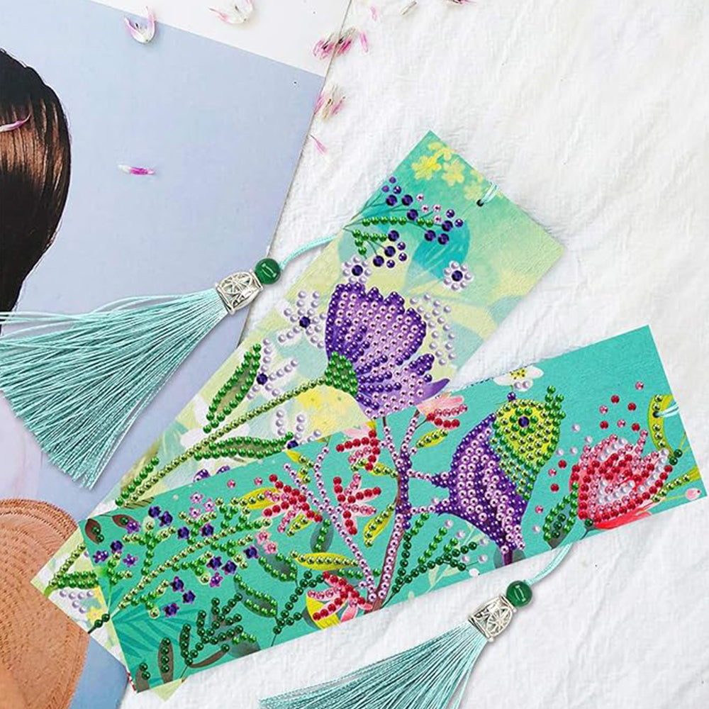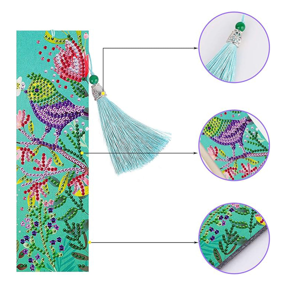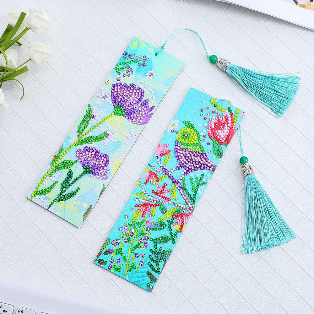2St. Blume und Vogel Leder Lesezeichen Set Diamond Painting