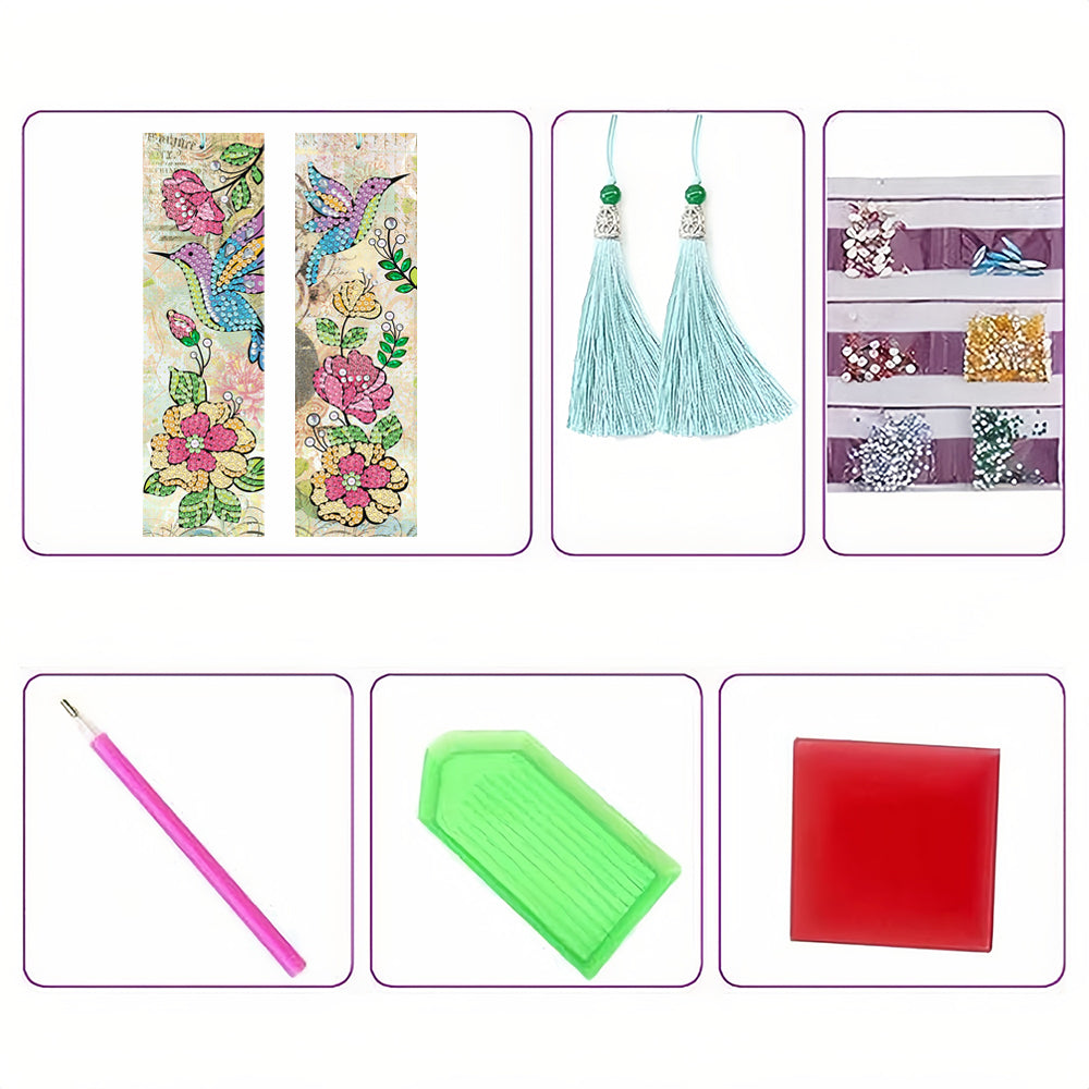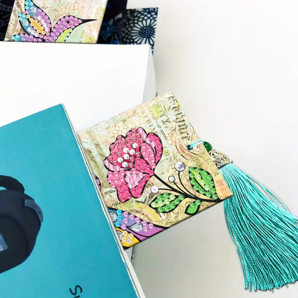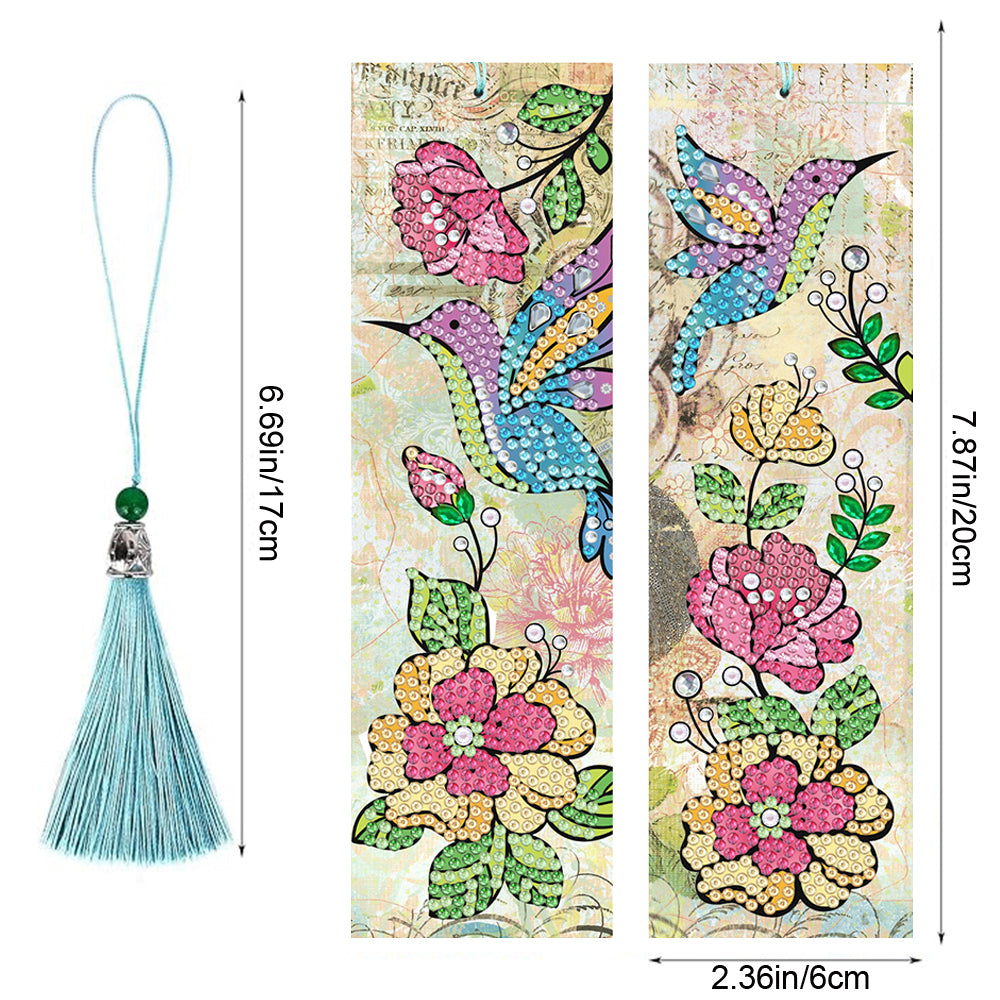2St. Blumen und Vögel Leder Lesezeichen Set Diamond Painting