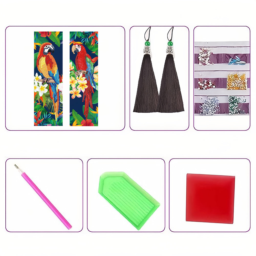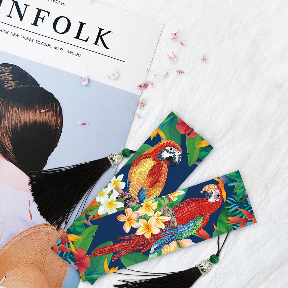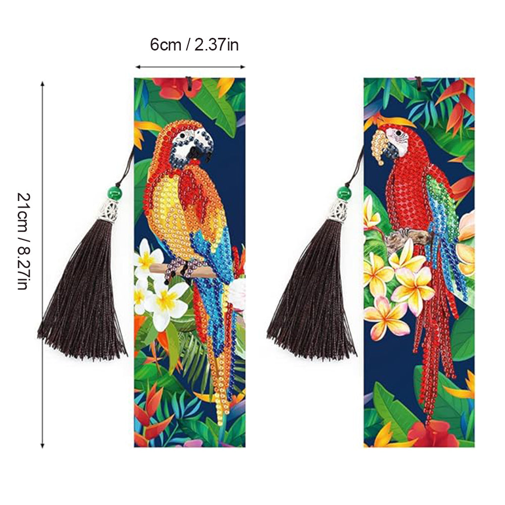 2St. Bunte Papagei Leder Lesezeichen Set Diamond Painting