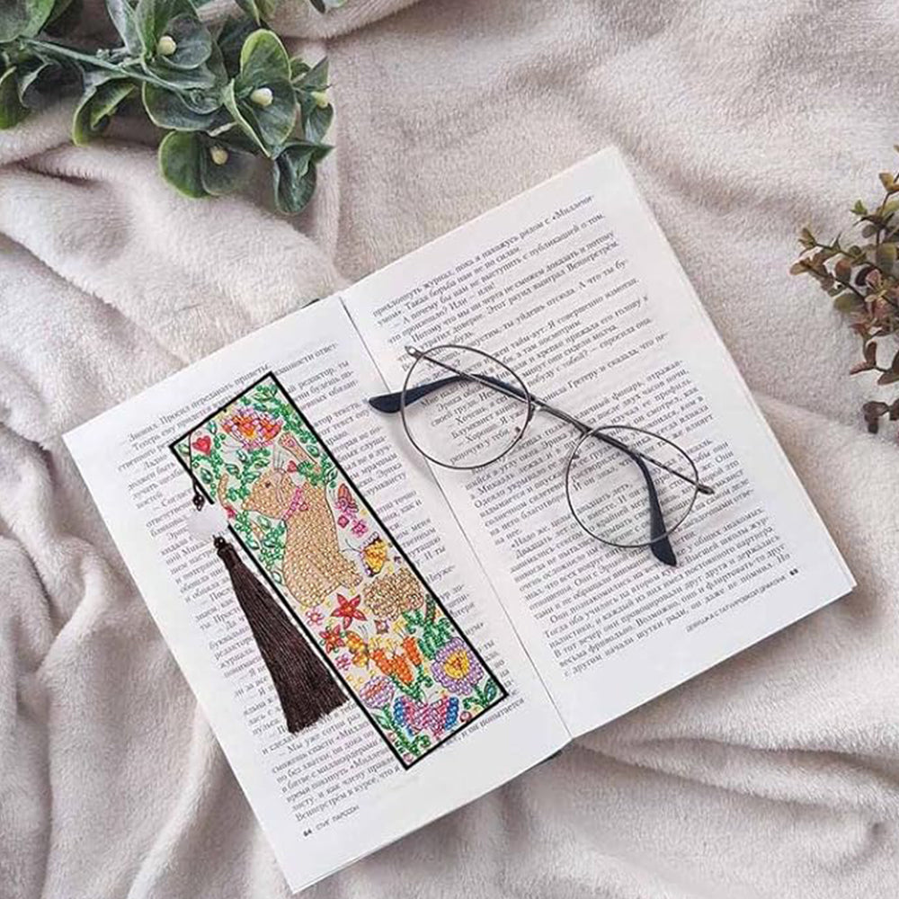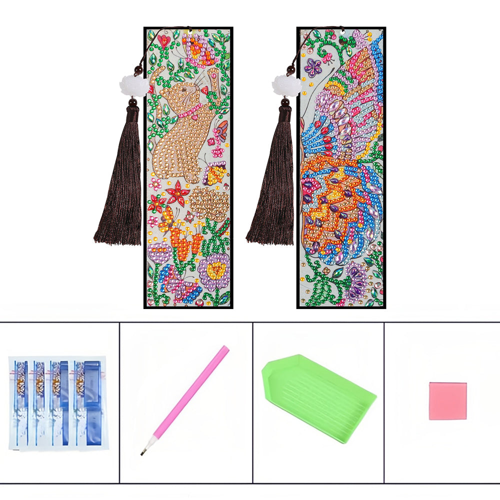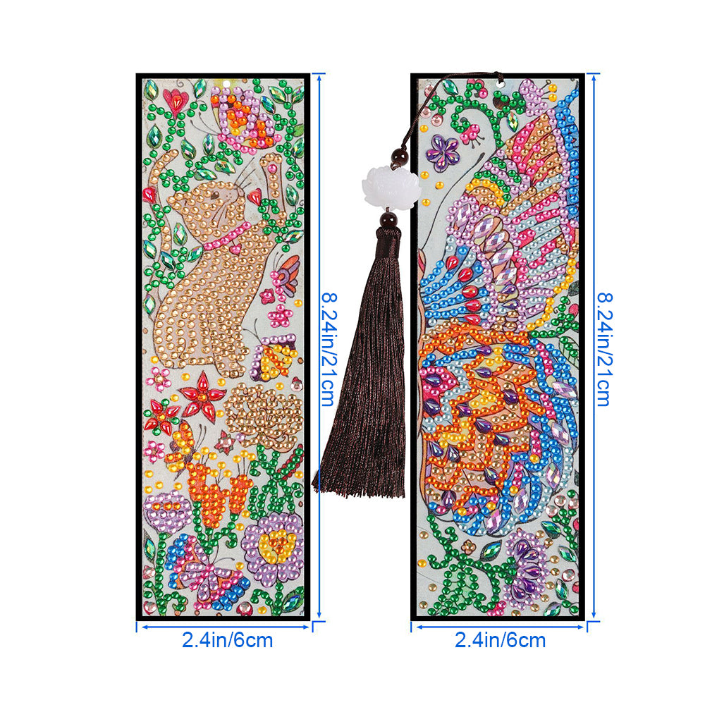 2St. Cartoon Katze und Schmetterling Leder Lesezeichen Set Diamond Painting