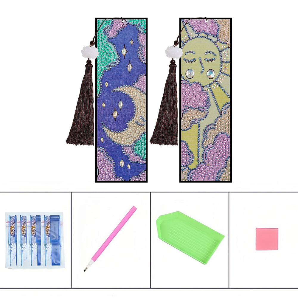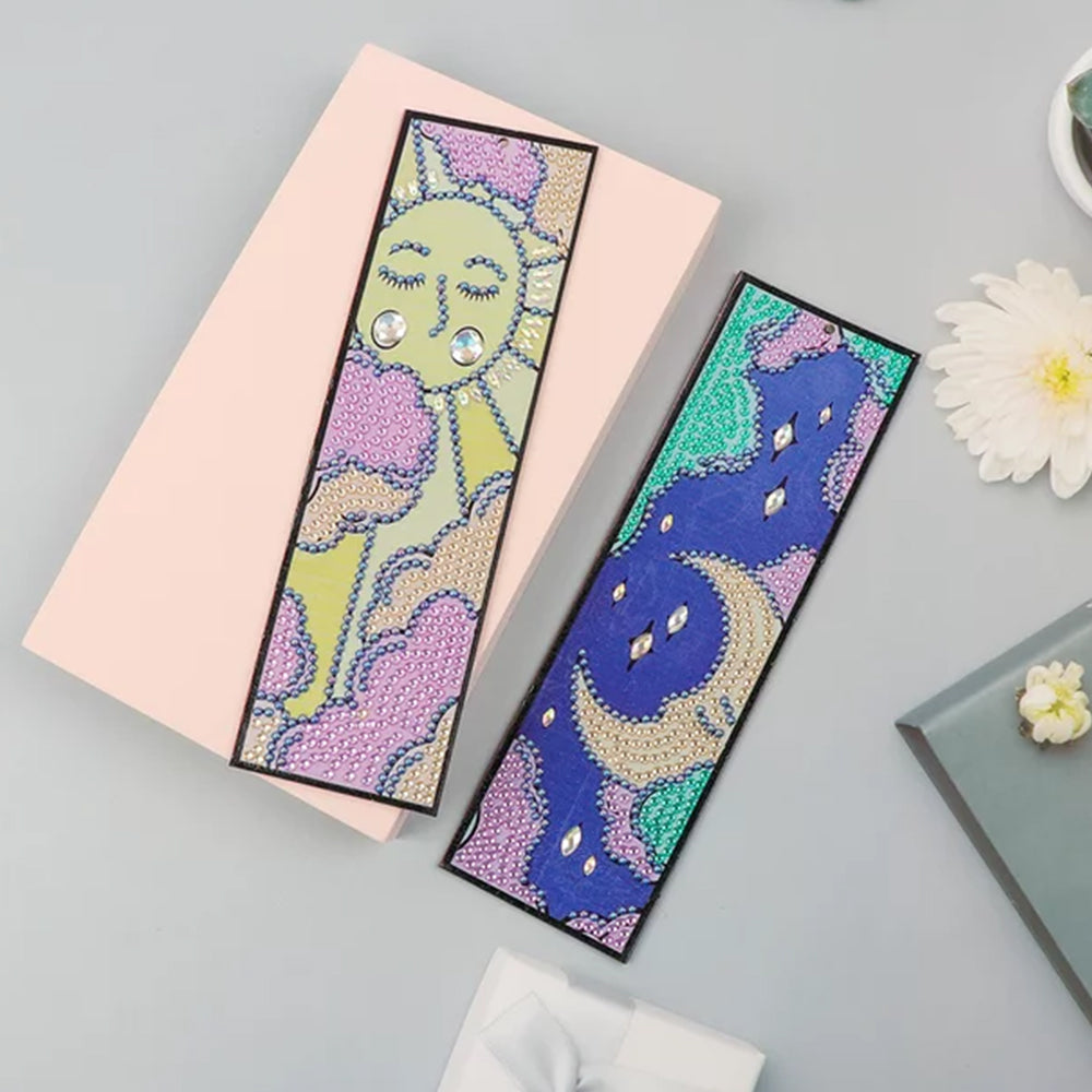 2St. Cartoon Sonne und Mond Leder Lesezeichen Set Diamond Painting