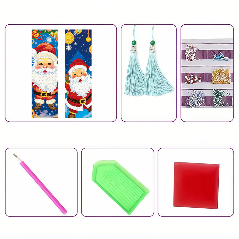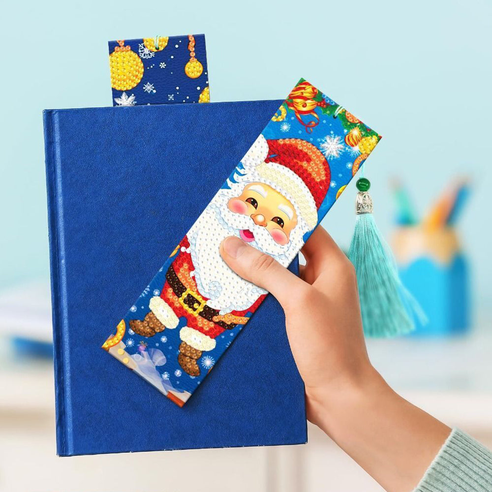 2St. Cartoon Weihnachtsmann Leder Lesezeichen Set Diamond Painting
