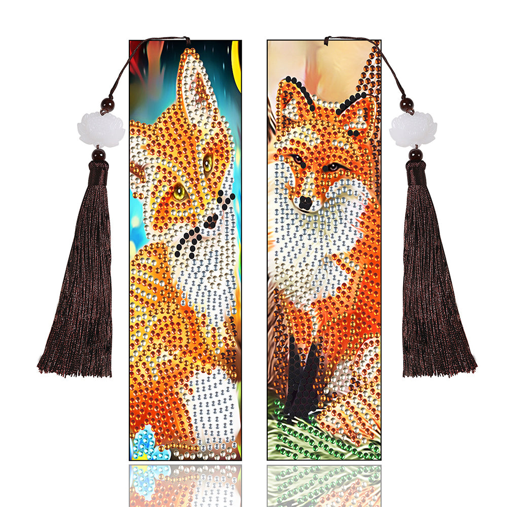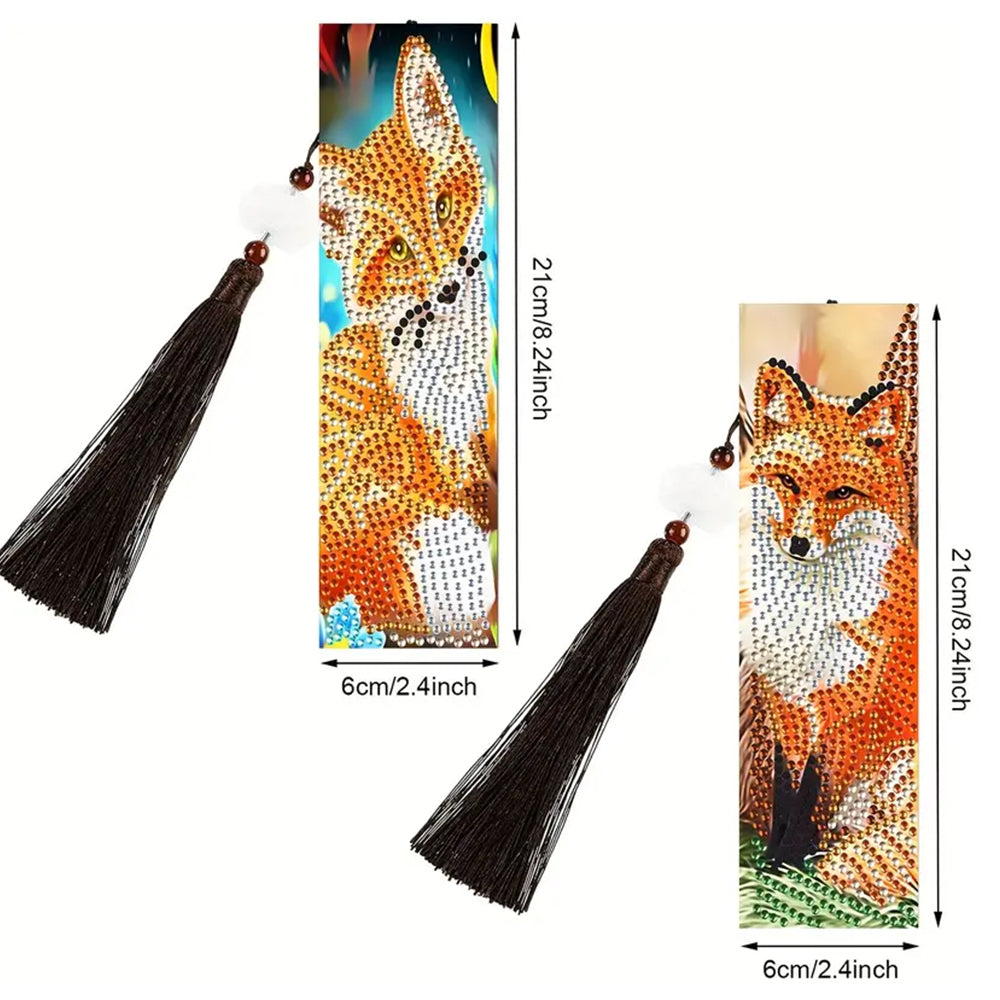 2St. Niedlicher Fuchs Leder Lesezeichen Set Diamond Painting