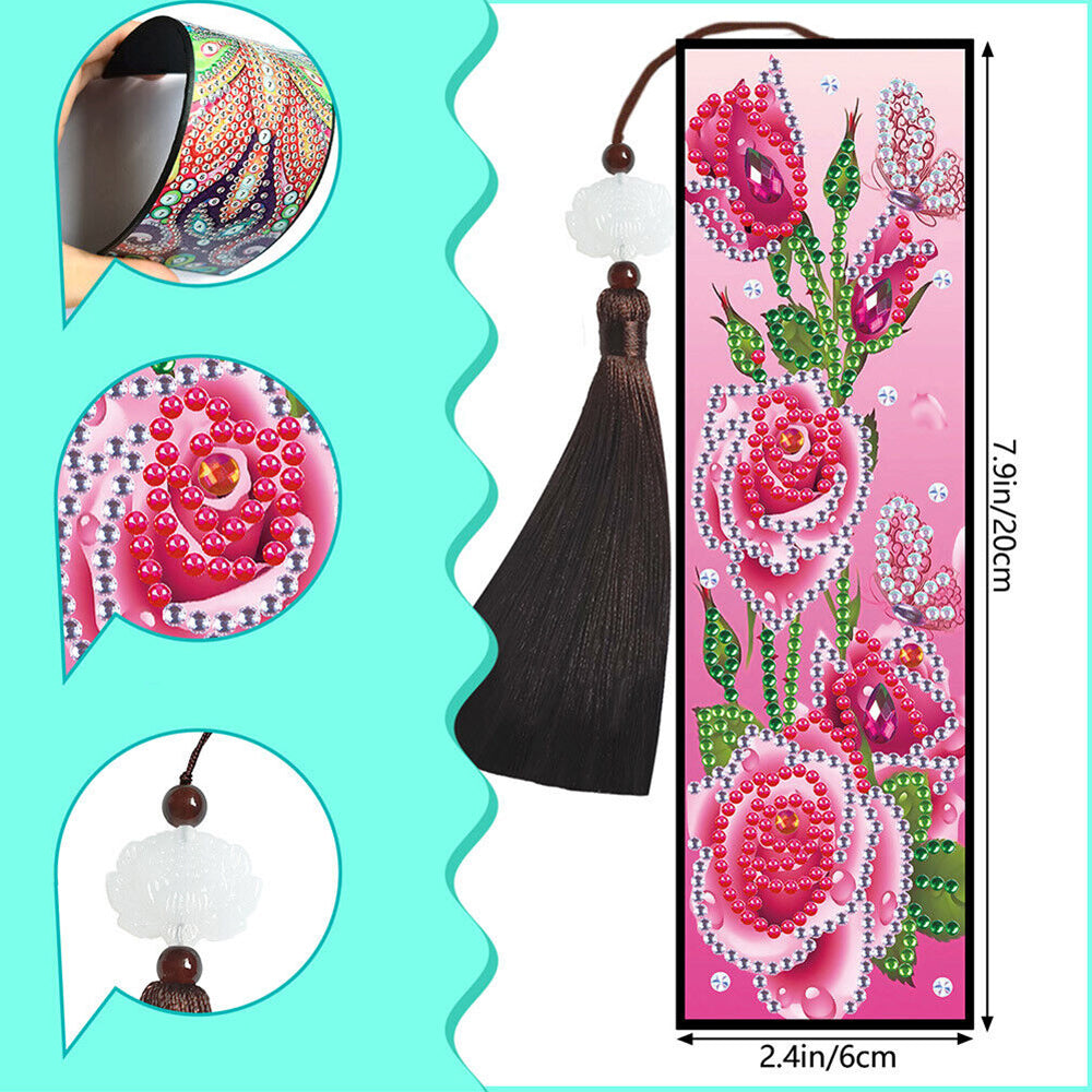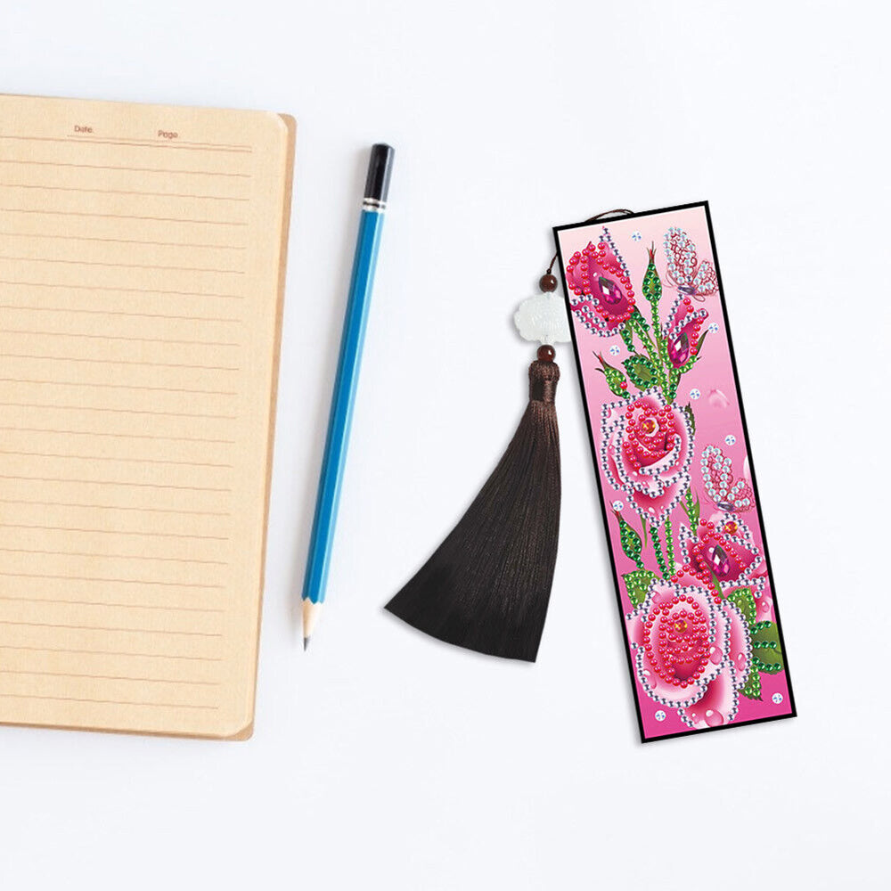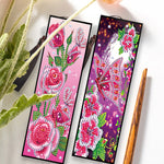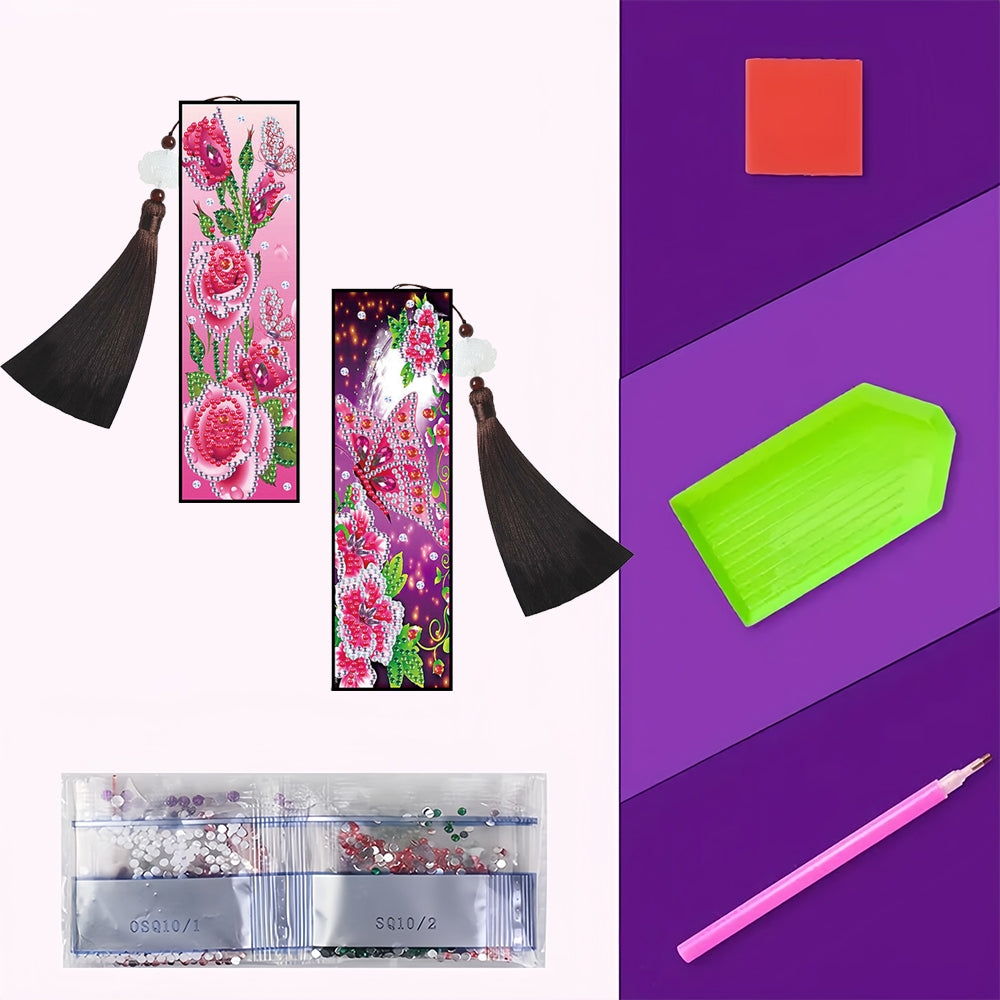 2St. Rosa Rose und Schmetterling Leder Lesezeichen Set Diamond Painting