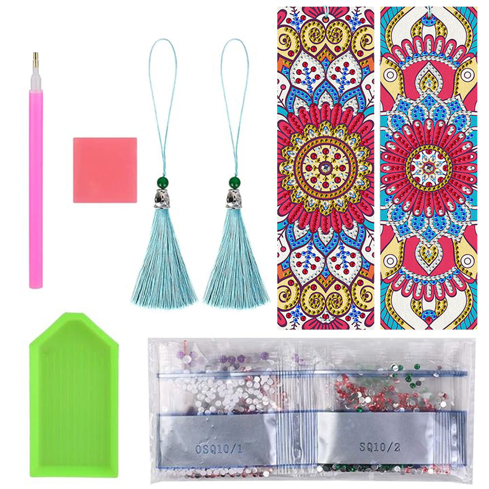 2St. Rotes Mandala Leder Lesezeichen Set Diamond Painting